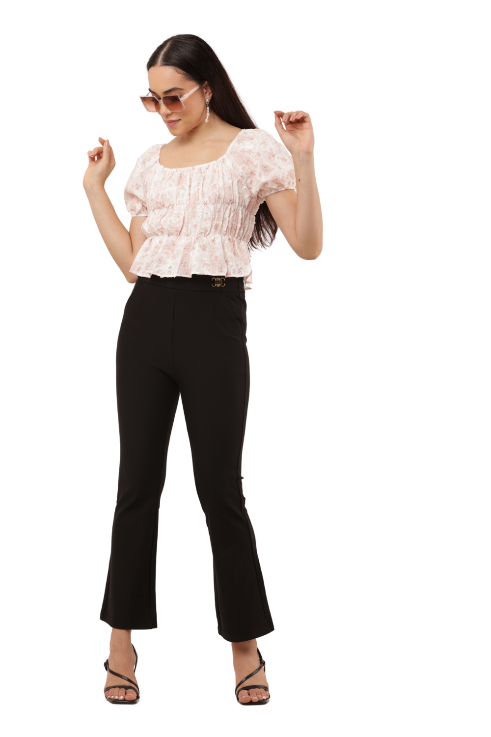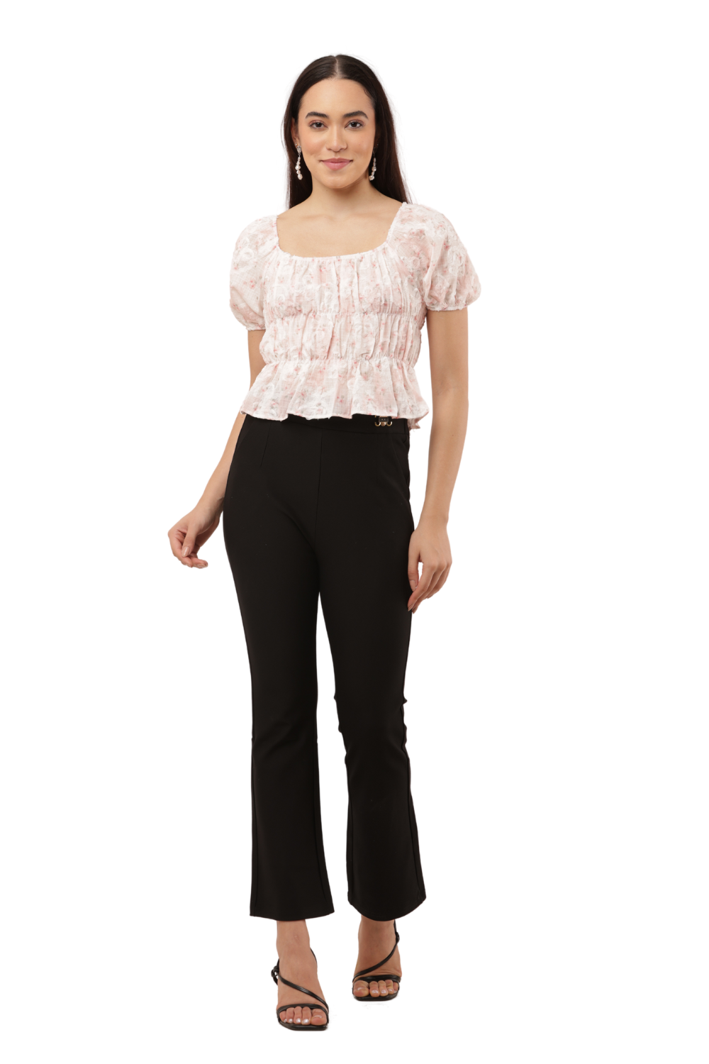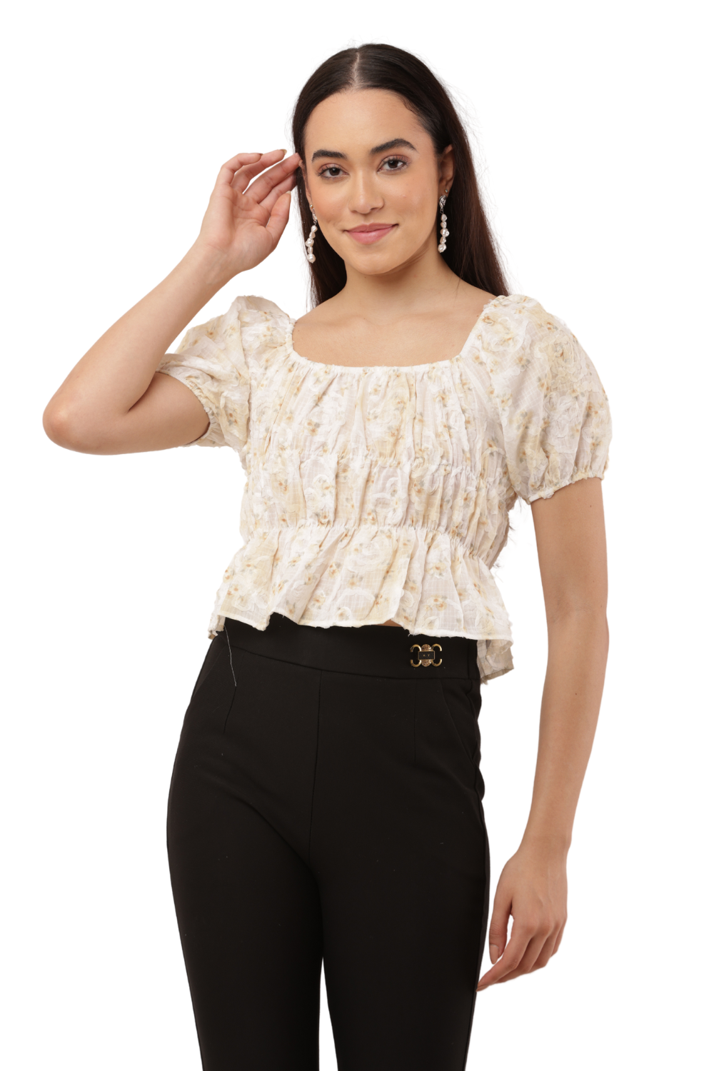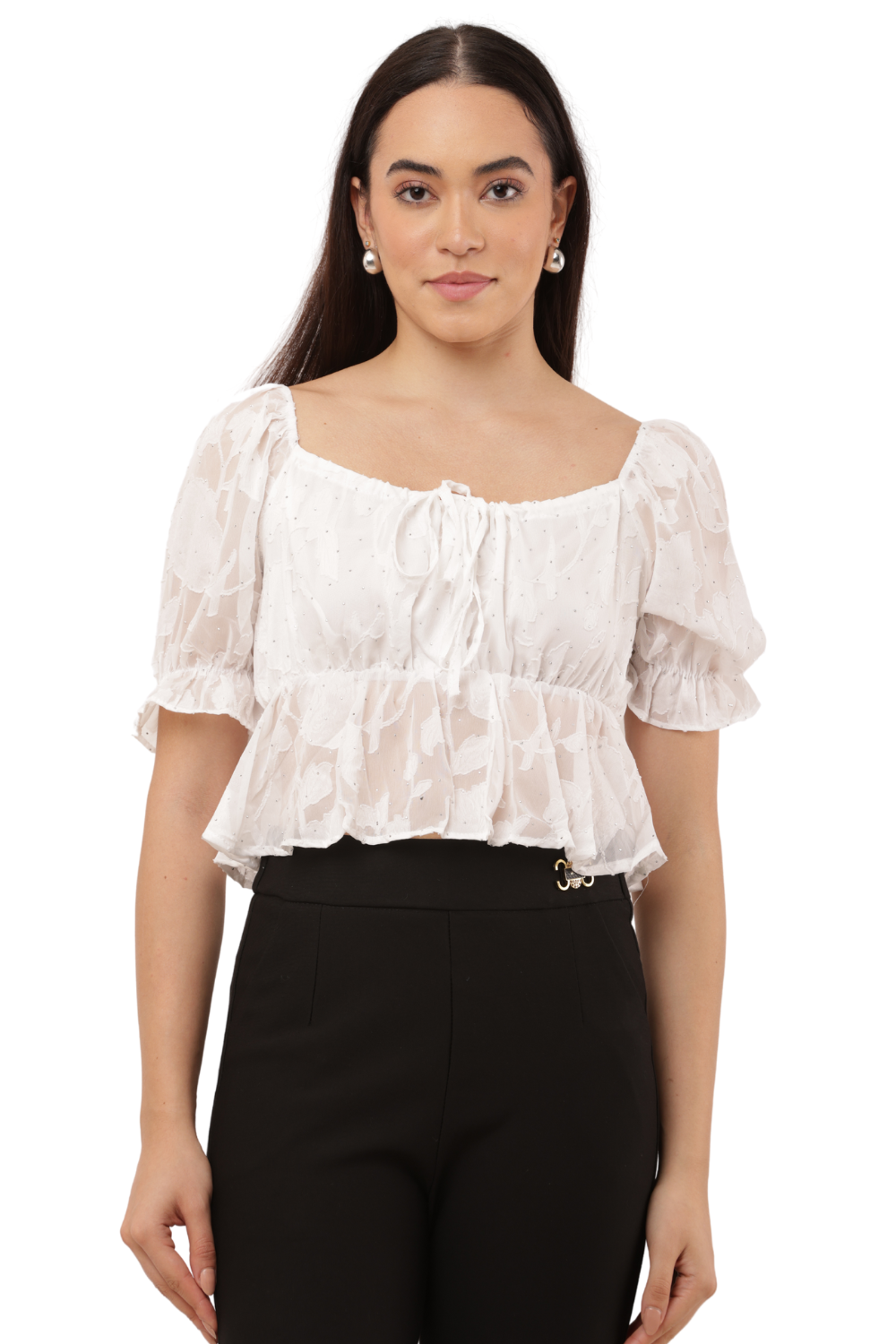 Add a dreamy charm to your wardrobe with this Blush Pink Floral Sheer Puff Sleeve Peplum Top. Featuring a delicate floral textured design and soft gathers, this Korean-inspired top is made from a lightweight, semi-sheer fabric that feels as romantic as it looks. The elasticated neckline and sleeves, combined with a soft peplum waist, create a flattering, feminine silhouette perfect for brunches, dates, or casual outings.