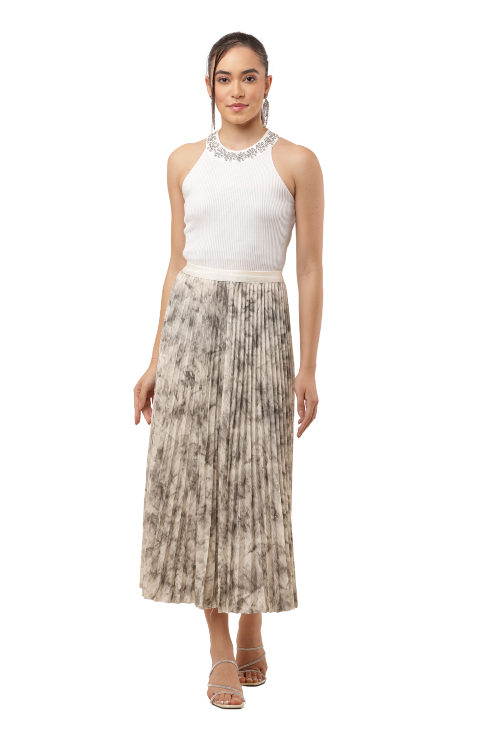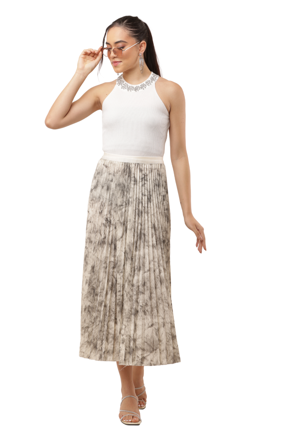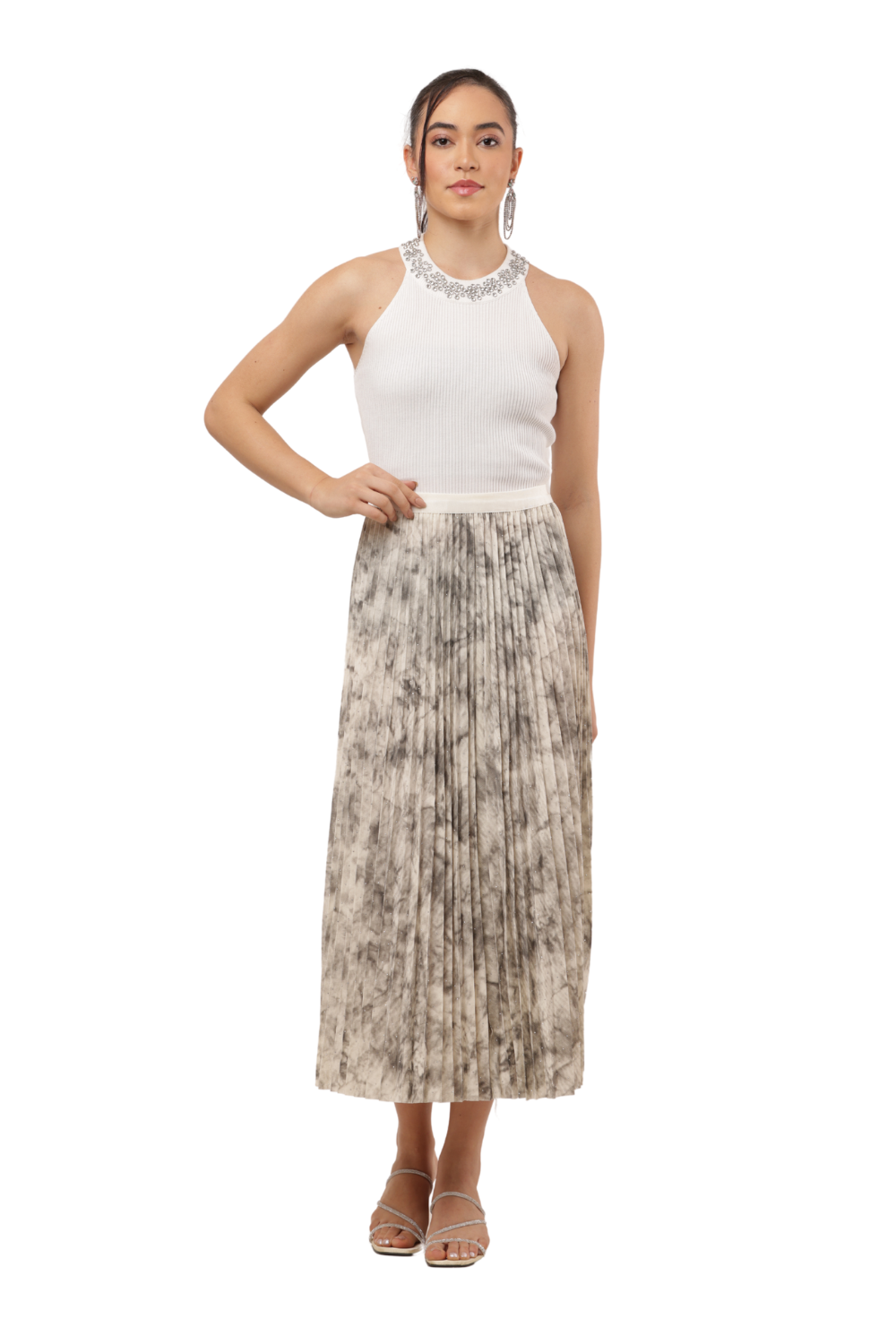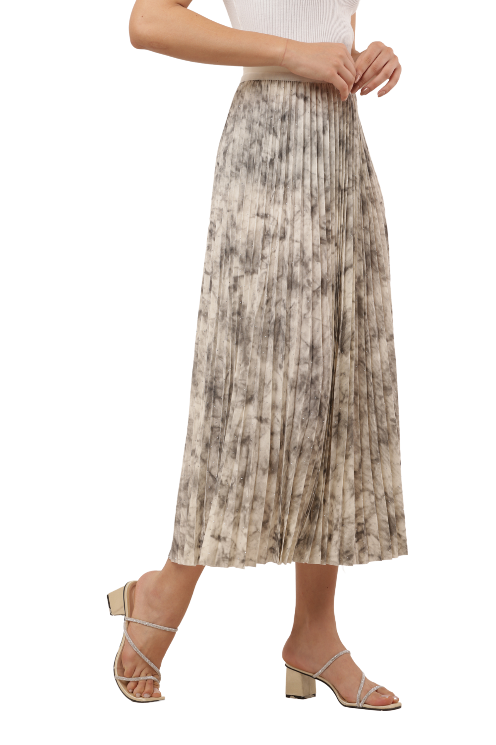 Elegant Pleated Midi Skirt with Tie-Dye Effect – Flowy & Chic