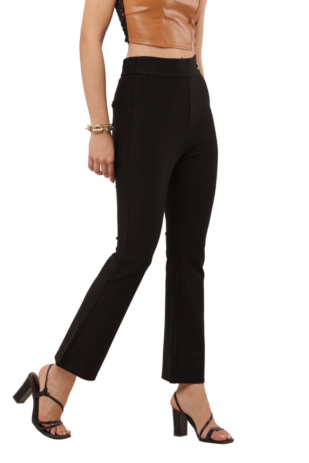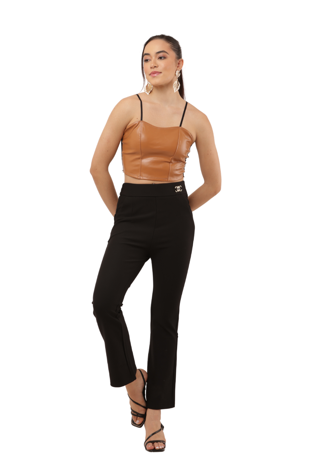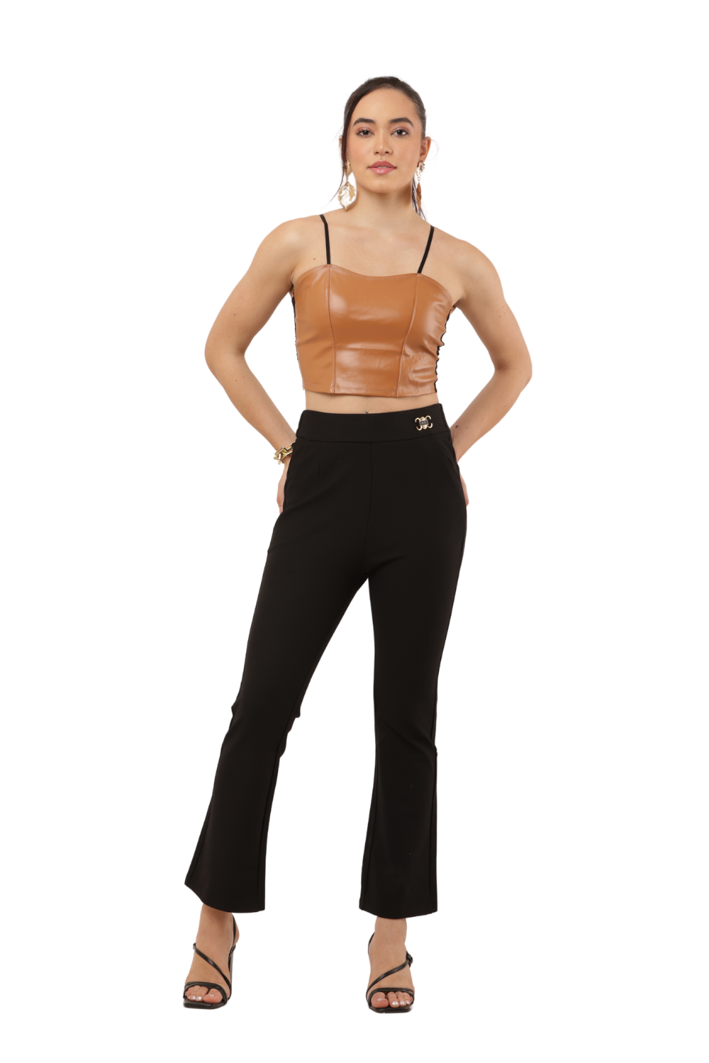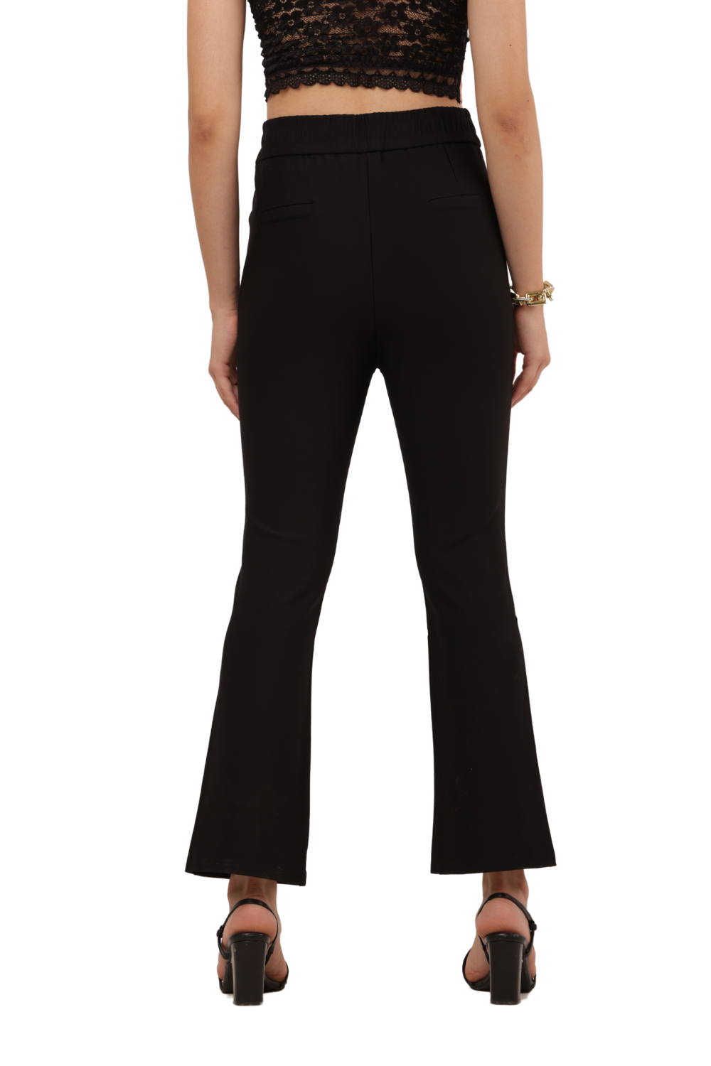 High-Waist Black Flared Pants with Gold Buckle – Korean Fashion Style