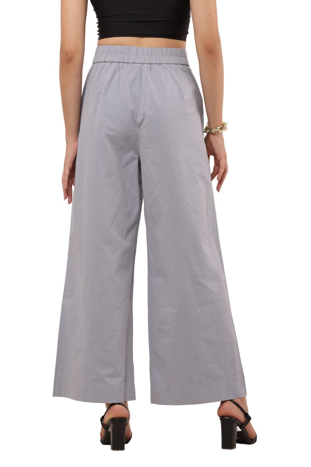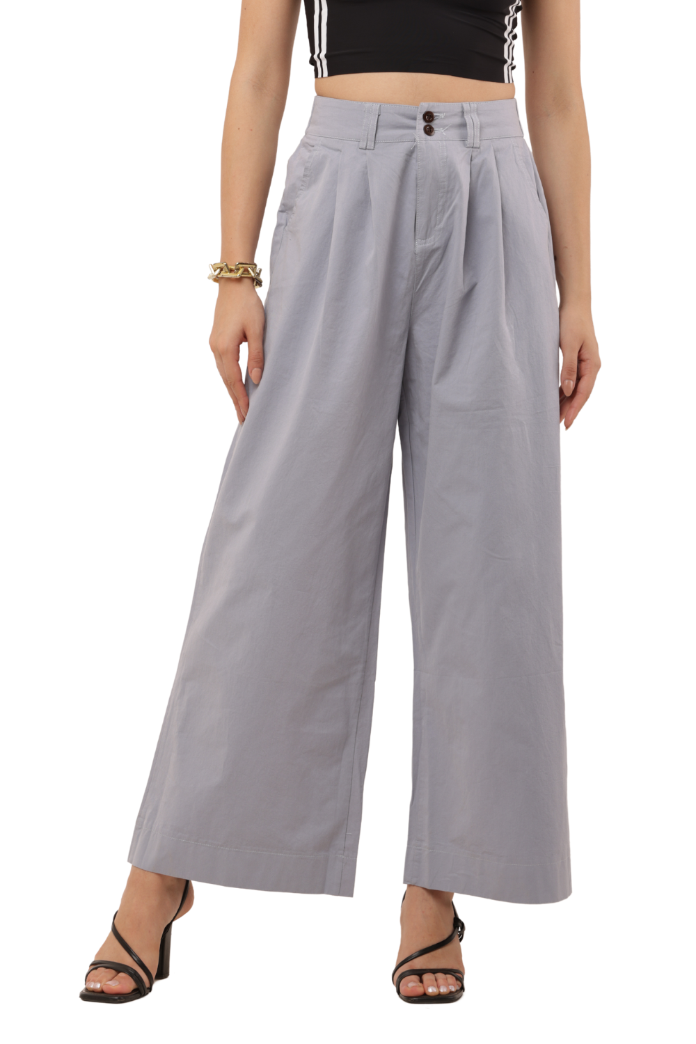 High-Waist Wide-Leg Korean Cotton Pants – Light Grey