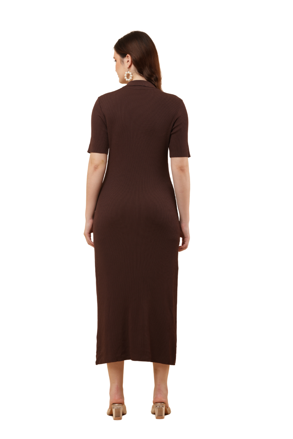 Korean Bodycon Ribbed Polo Midi Dress Free Size – Korean Fashion Style