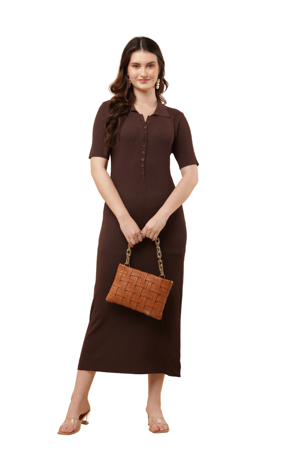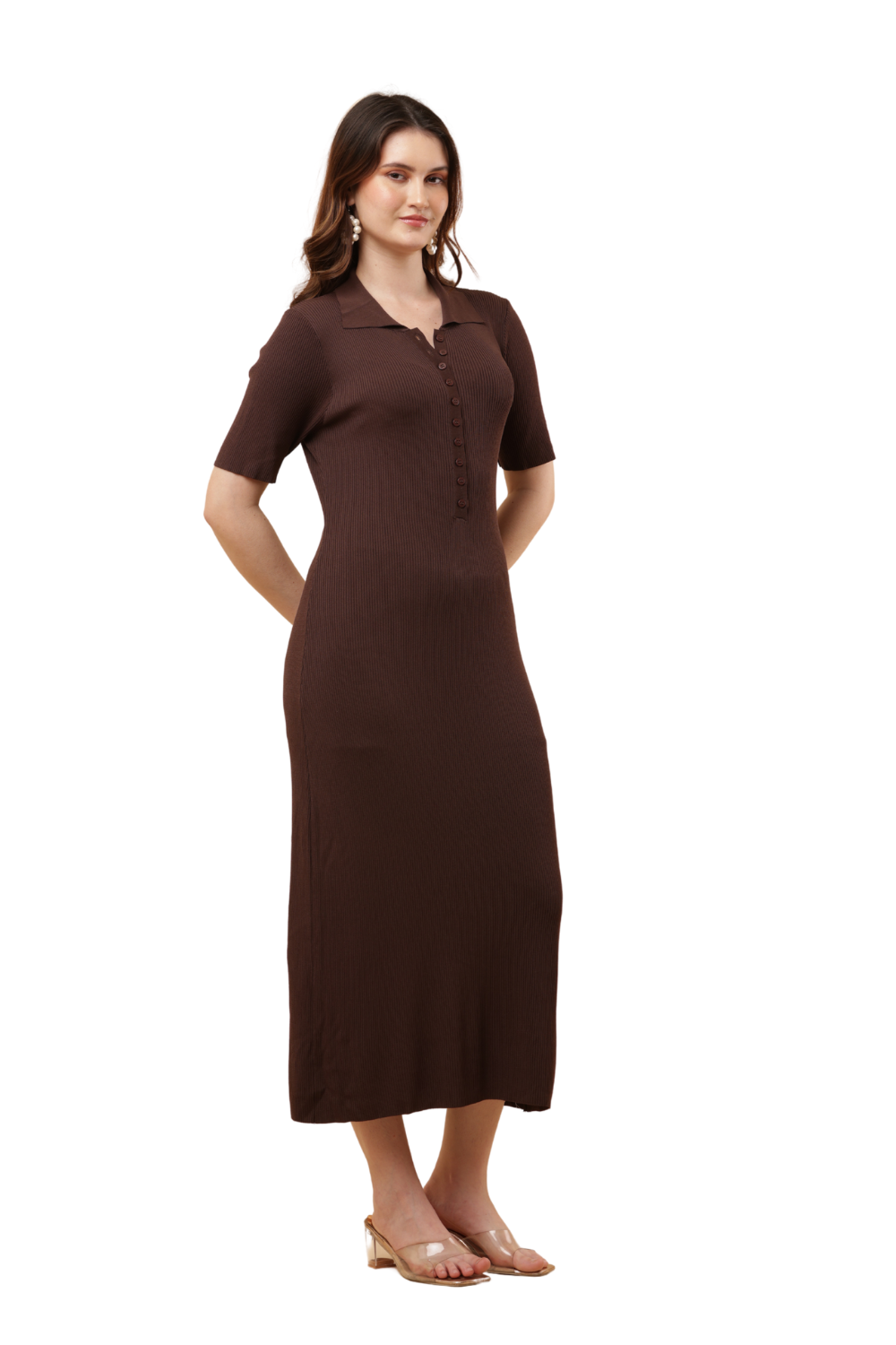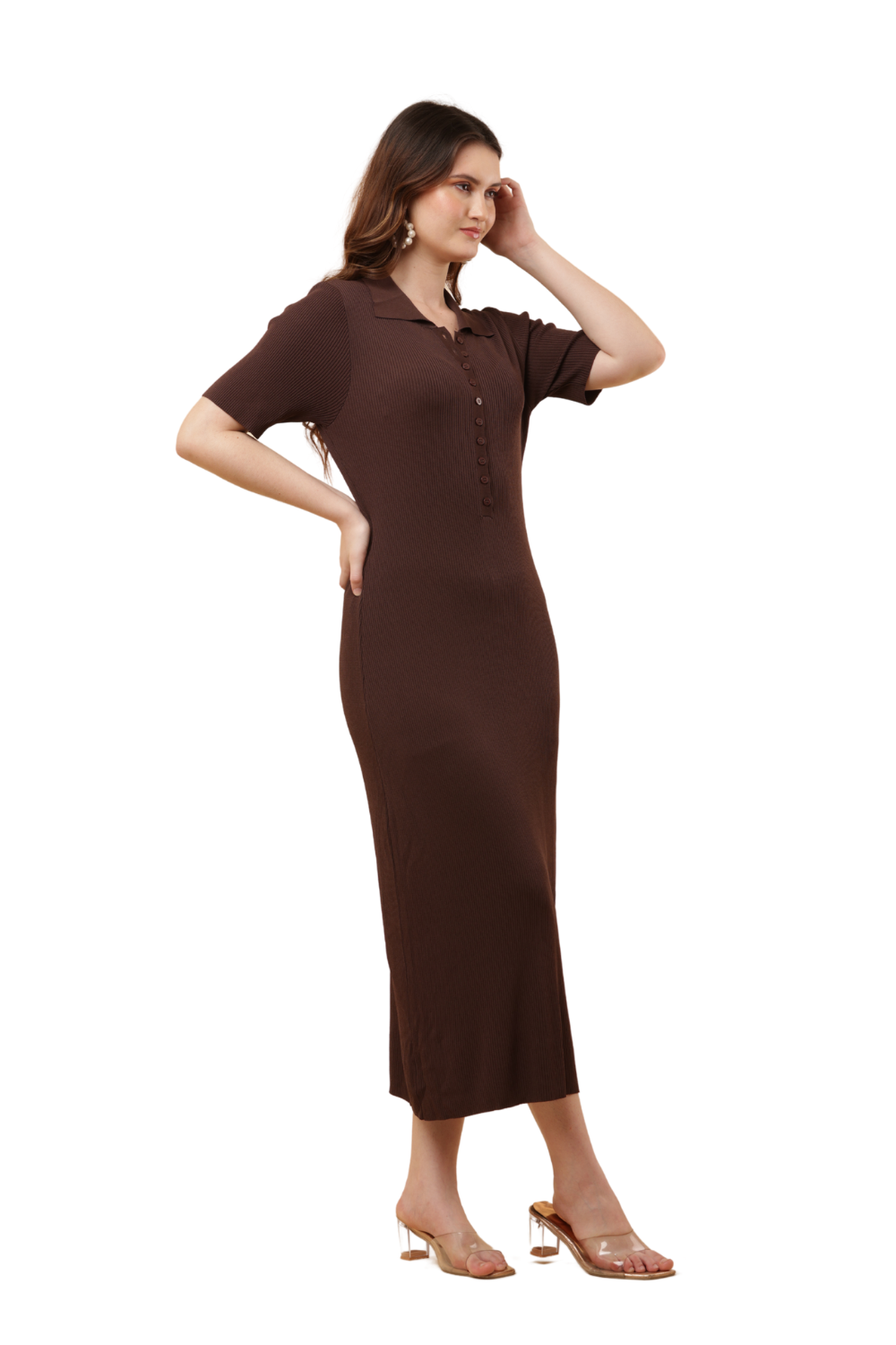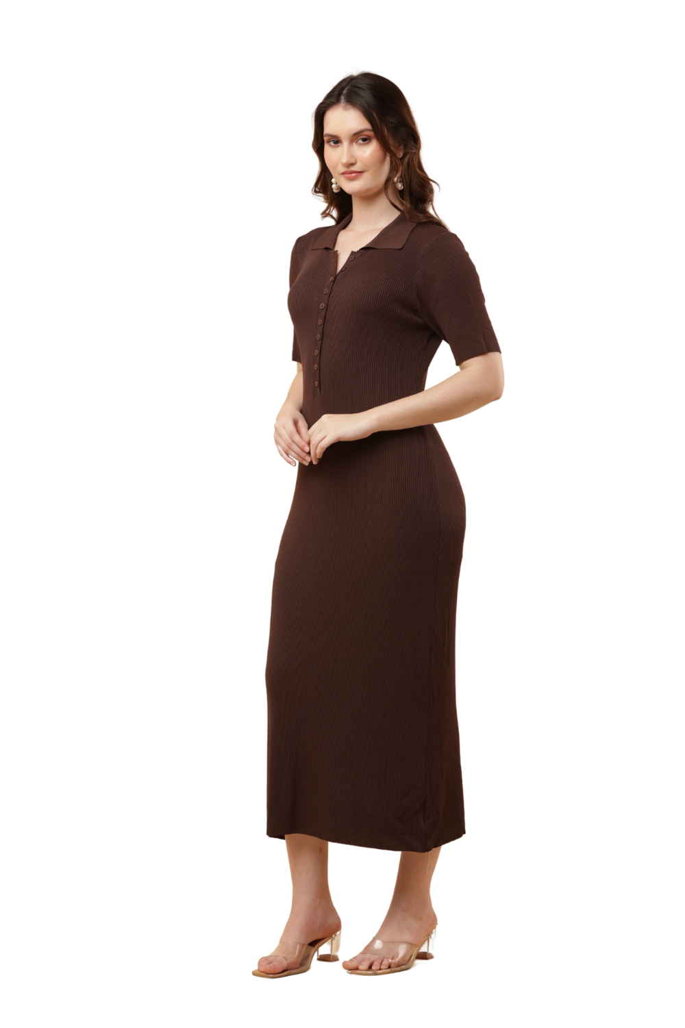 Elevate your wardrobe with this Korean Bodycon Ribbed Polo Midi Dress, a perfect fusion of elegance and minimalism inspired by modern Korean fashion. Crafted from soft, ribbed knit fabric, this dress features a flattering body-hugging silhouette that contours the body gracefully. The collared neckline with a full button-down front adds a touch of sophistication, while the half sleeves offer a balanced, modest appeal. Ideal for both casual and semi-formal occasions, this Korean clothes staple will keep you looking polished and trendy all day long.