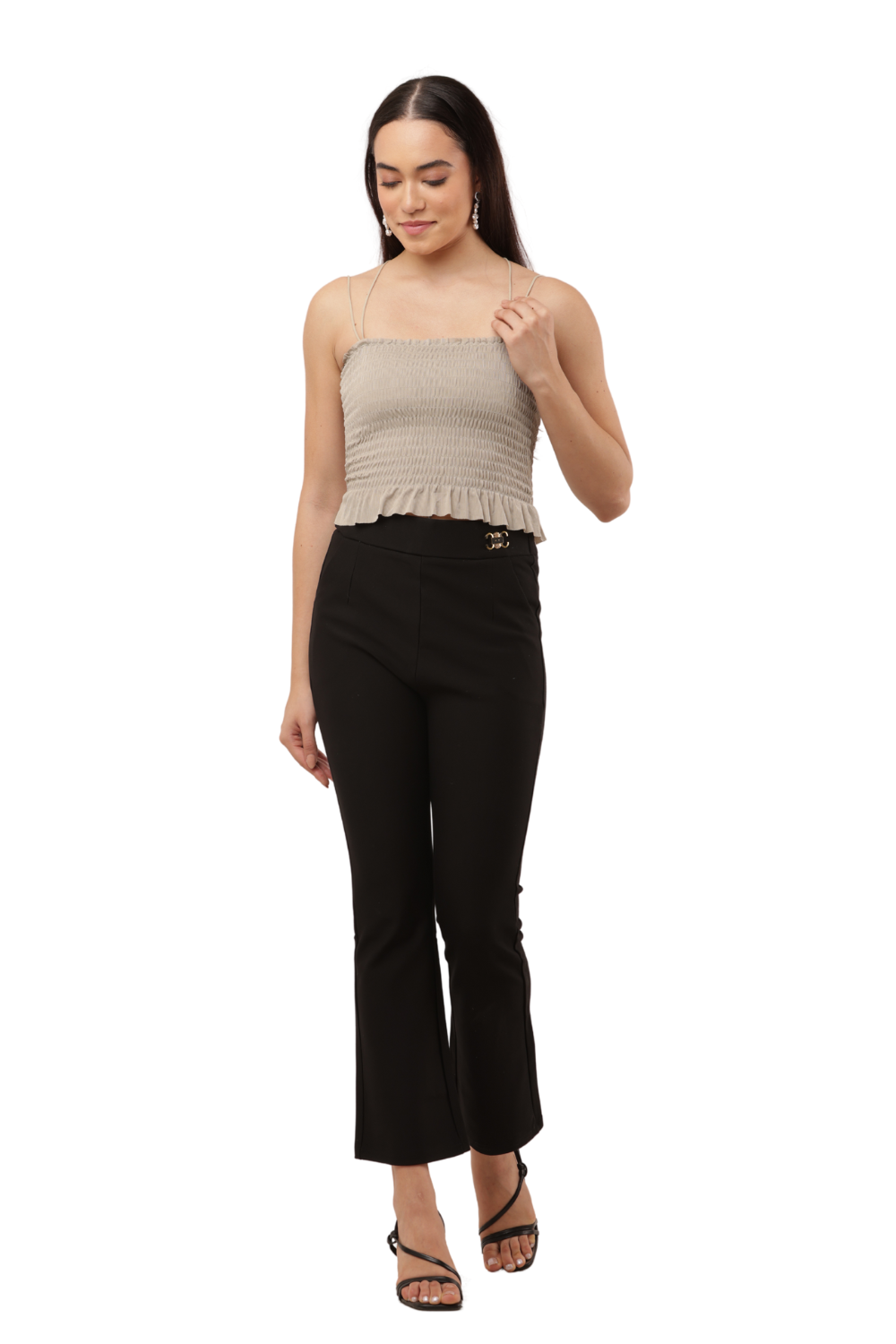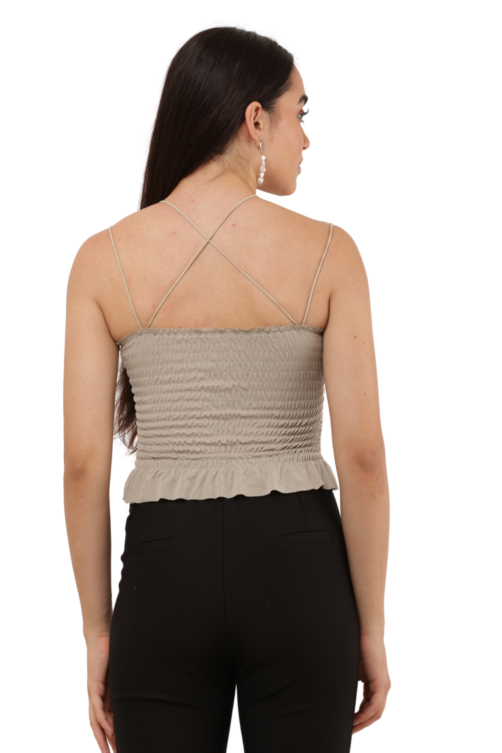 This trendy Korean top captures the essence of minimalist Korean fashion with its chic smocked texture and breezy silhouette. Designed with delicate spaghetti straps that criss-cross at the back for a playful twist, this Korean spaghetti top hugs your figure comfortably while the ruffled hem adds a soft, feminine touch. A must-have piece for anyone who loves Korean clothes with modern flair—perfect for casual outings or layering under a jacket.