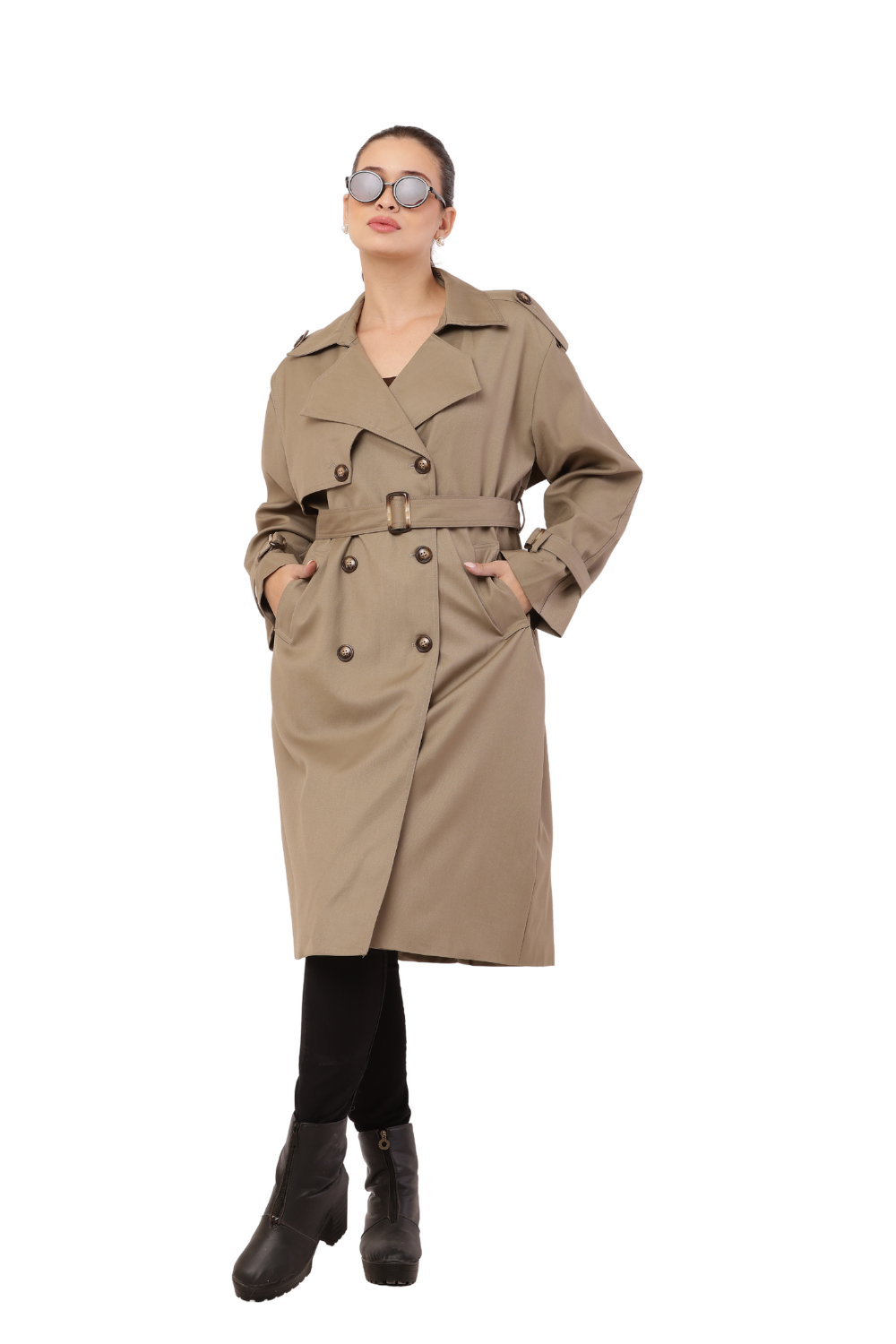 Korean-style Double-Breasted Trench Coat for Women- Classic and Stylish Outwear