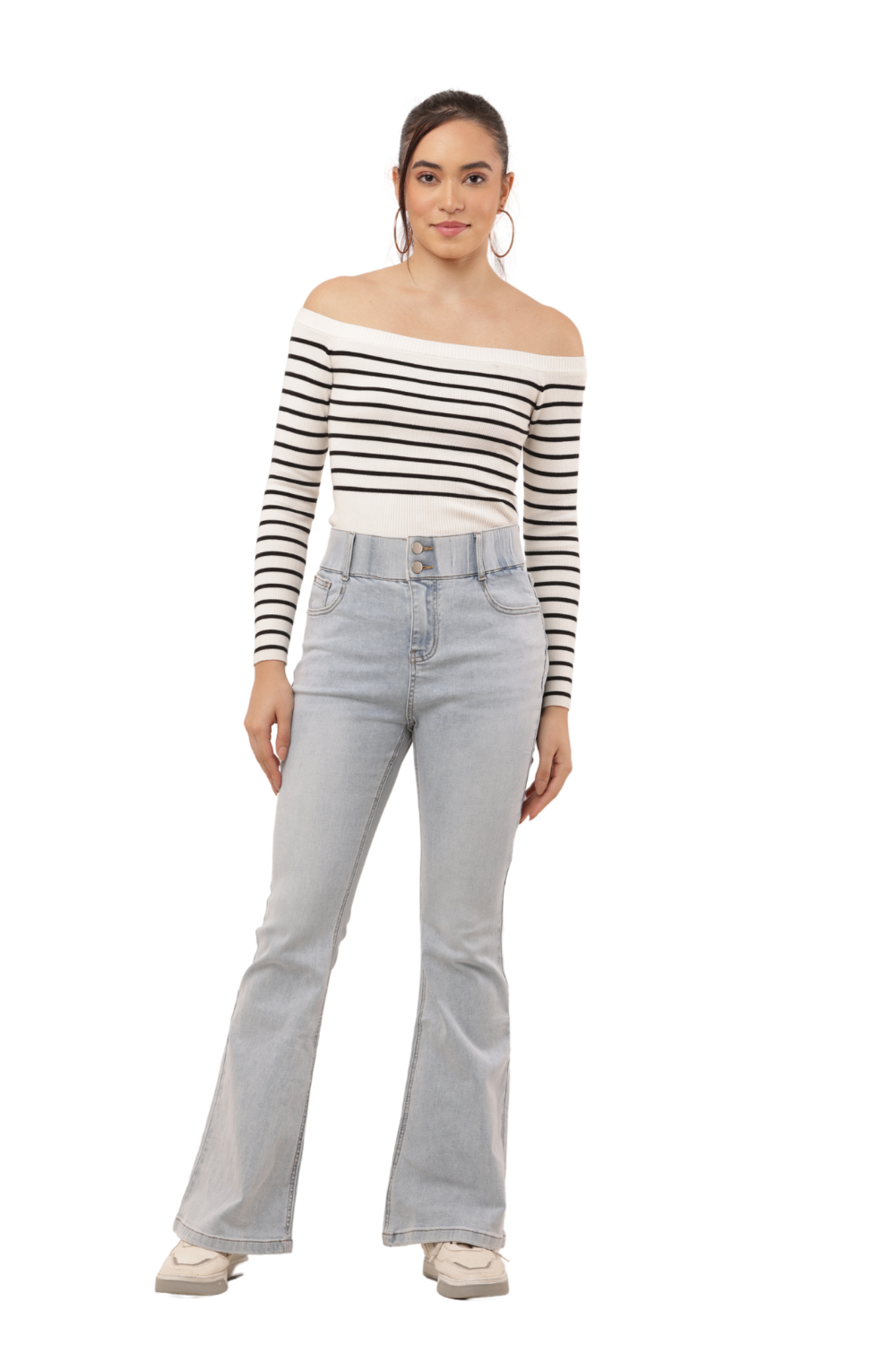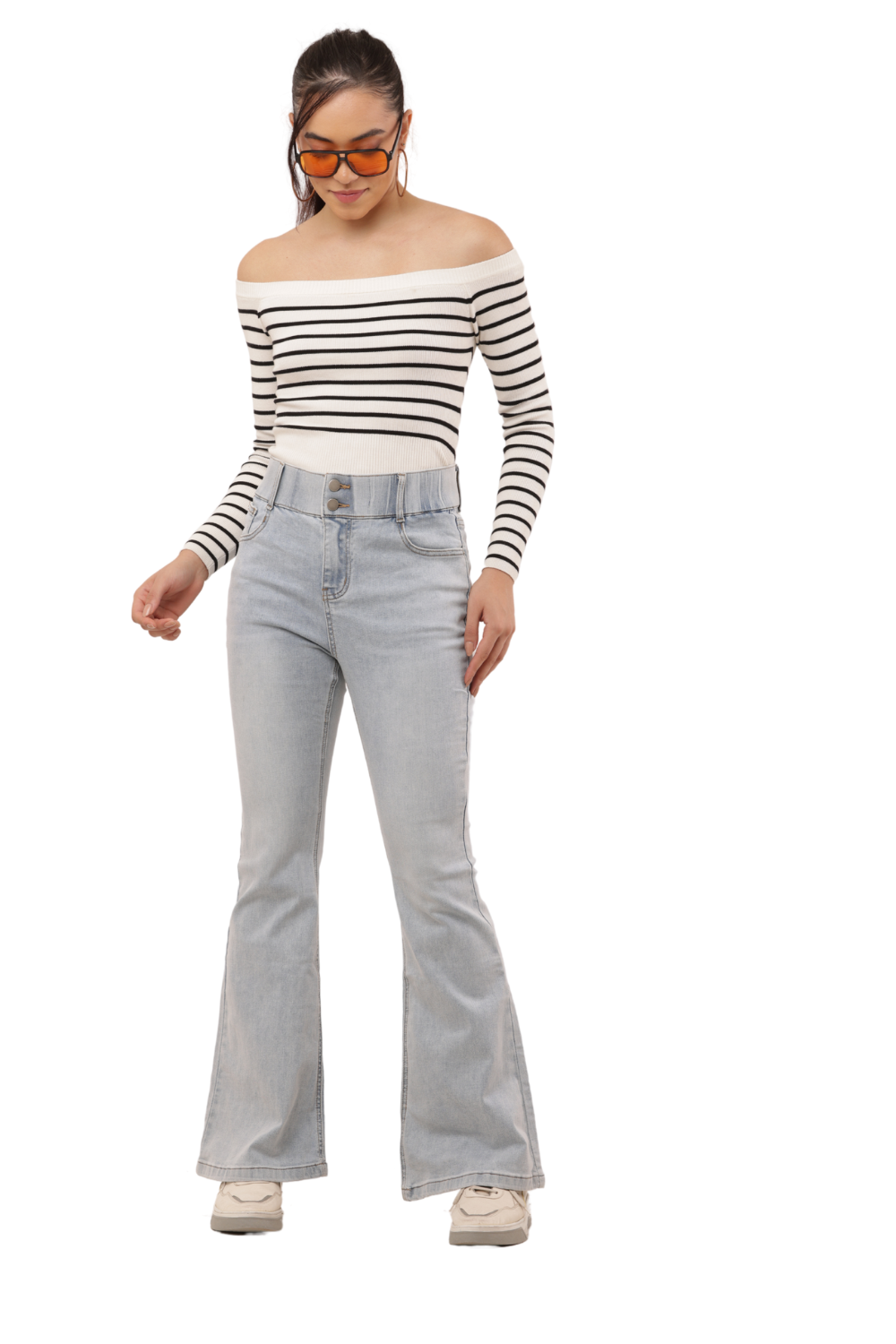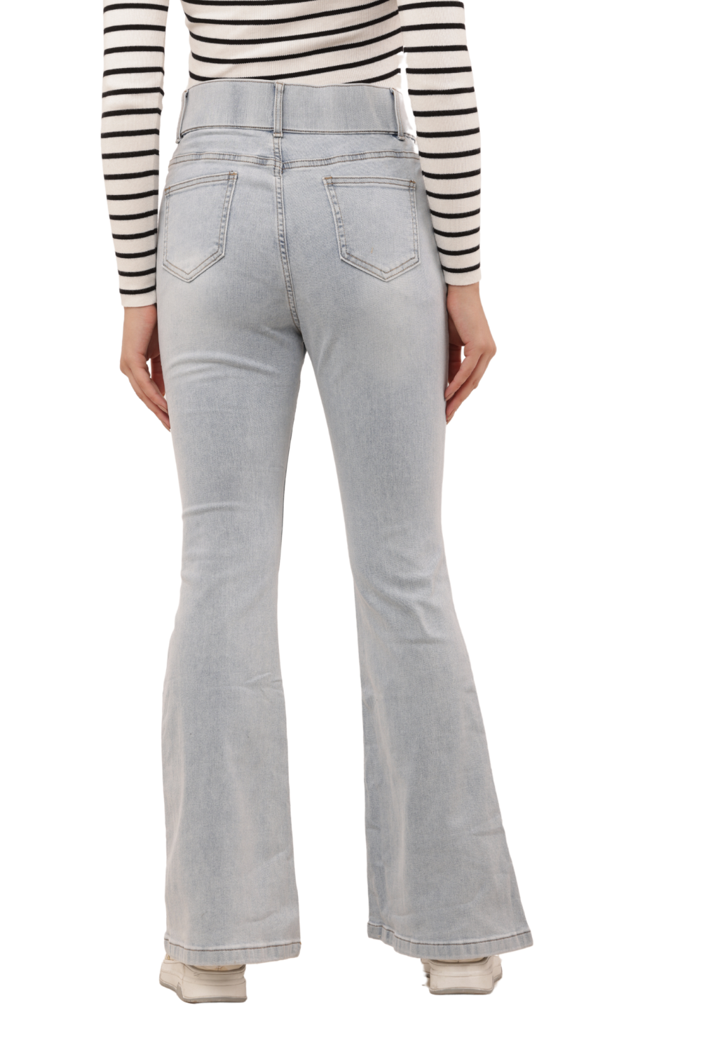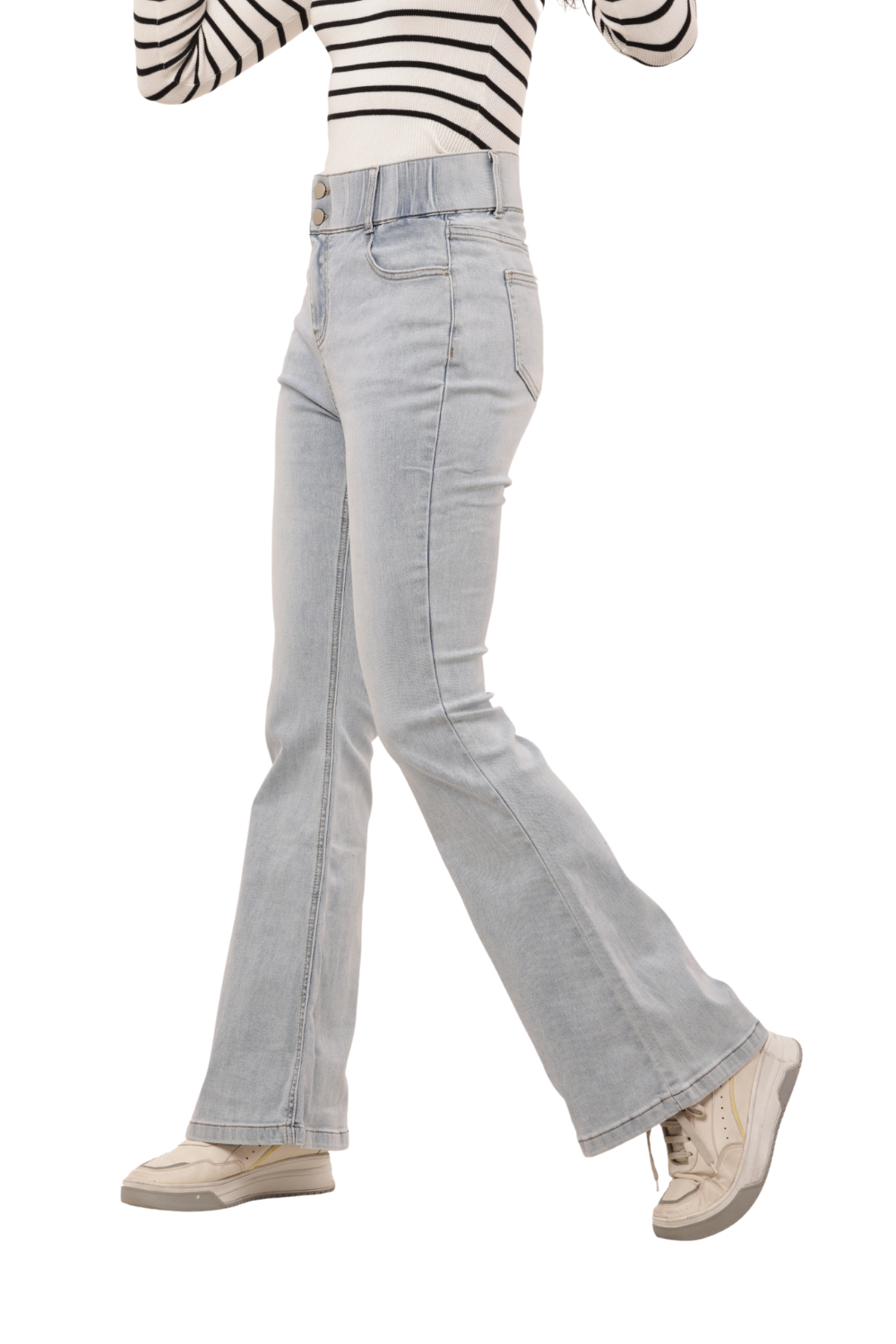 Elevate your casual wardrobe with these Light Wash High Waist Korean Denim Bell Bottom Jeans. Inspired by timeless Korean fashion trends, these jeans feature a flattering high-rise waist and a sleek flared leg for that perfect vintage-meets-modern vibe. The soft, stretch denim ensures day-long comfort and a contouring fit, while the clean back pocket design keeps it minimal and chic. Pair effortlessly with sneakers or boots for an authentic Korean street-style look.