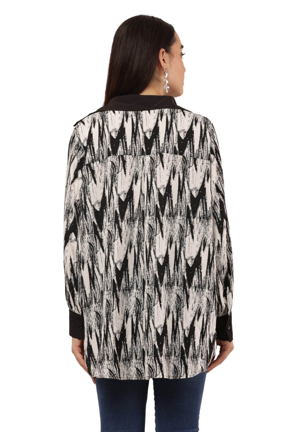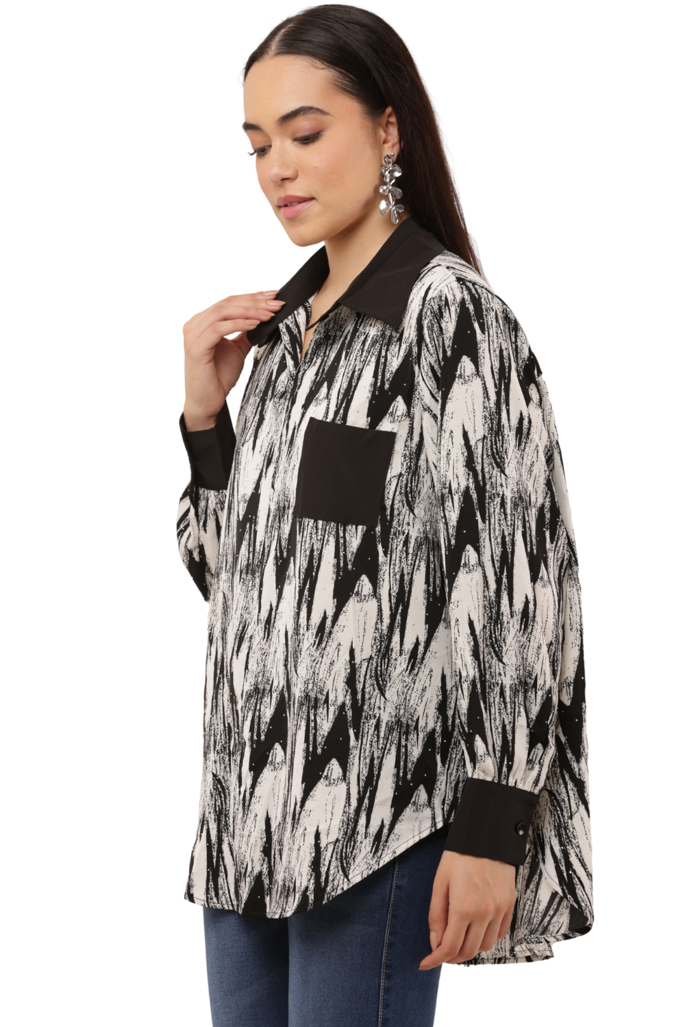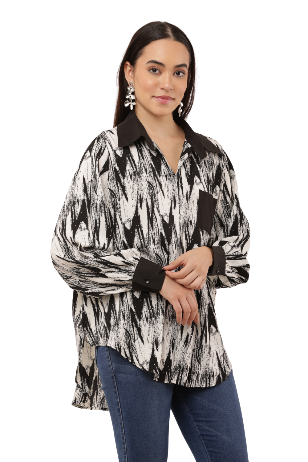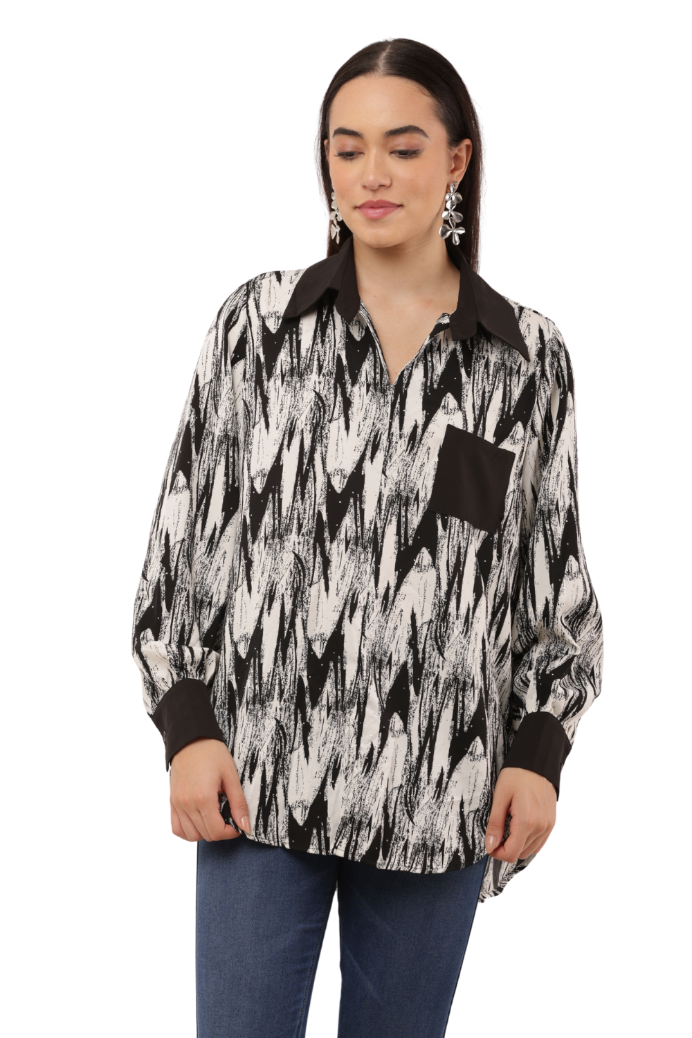 Oversized Abstract Print Button-Down Free Size Shirt with Contrast Detailing
