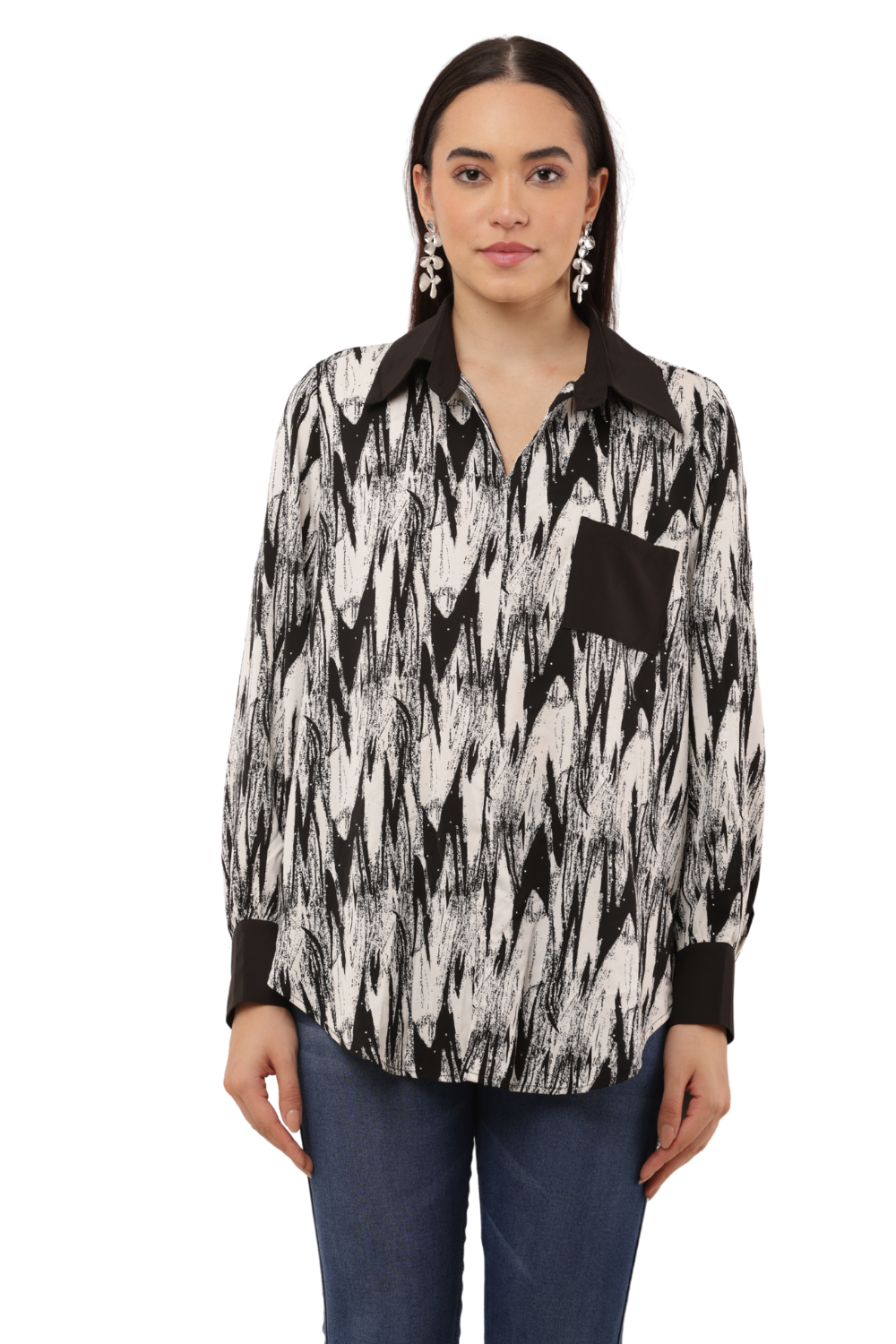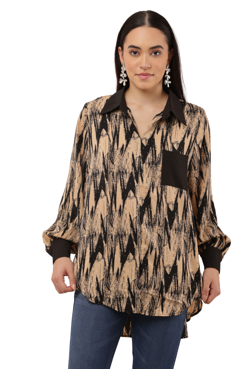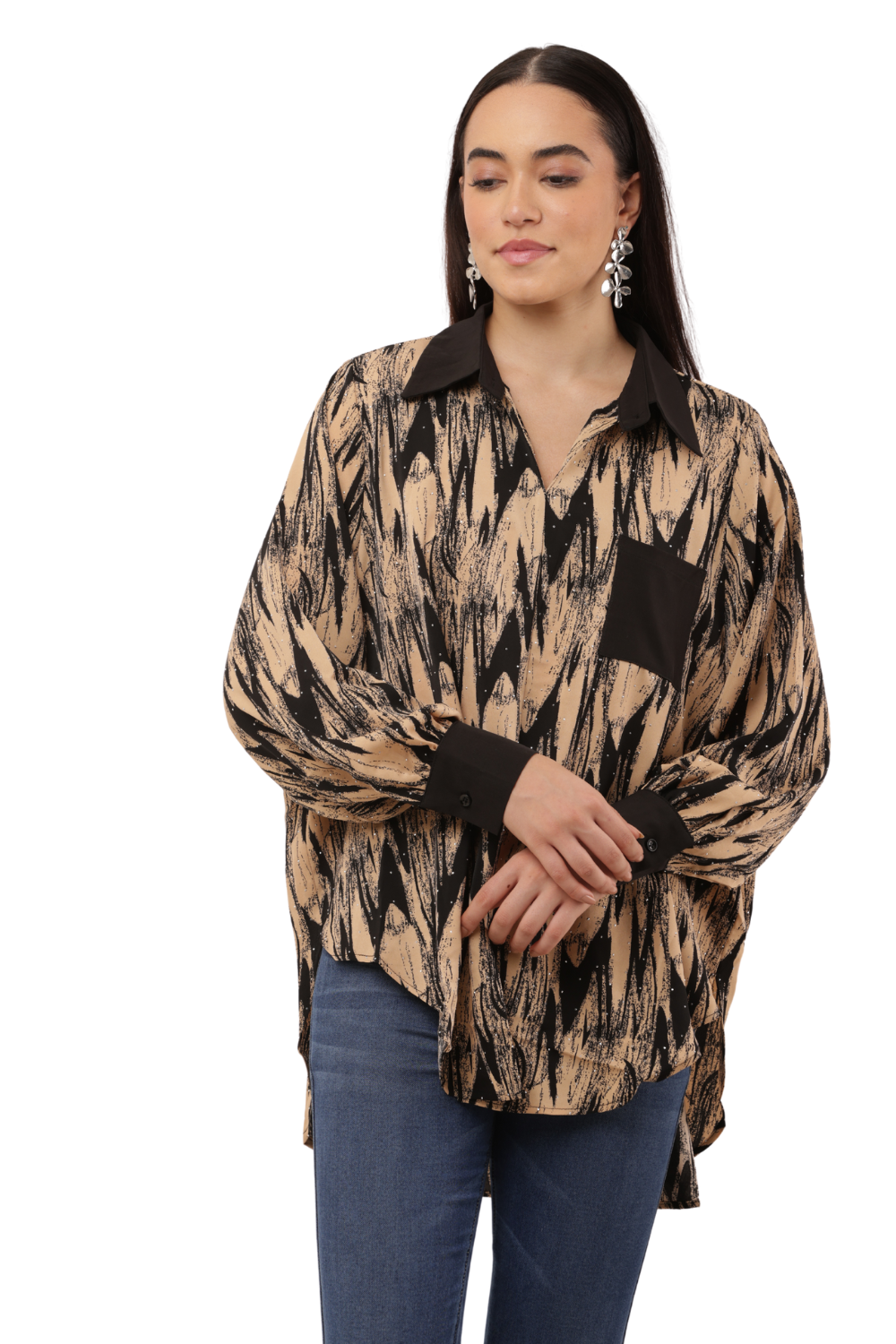 Oversized Abstract Print Button-Down Free Size Shirt with Contrast Detailing