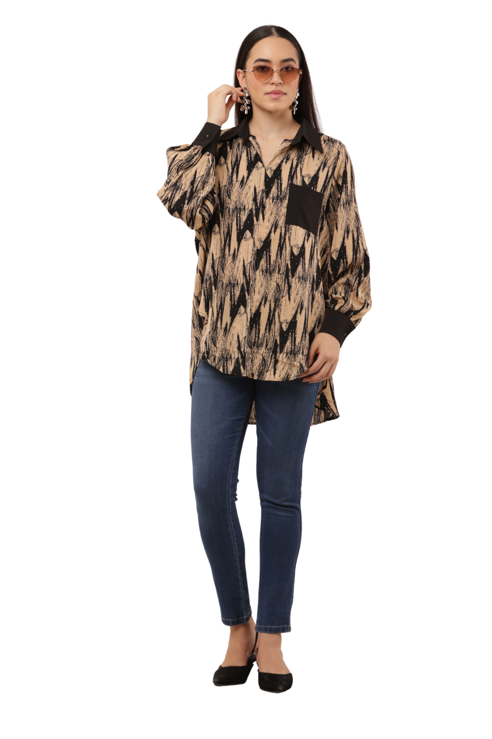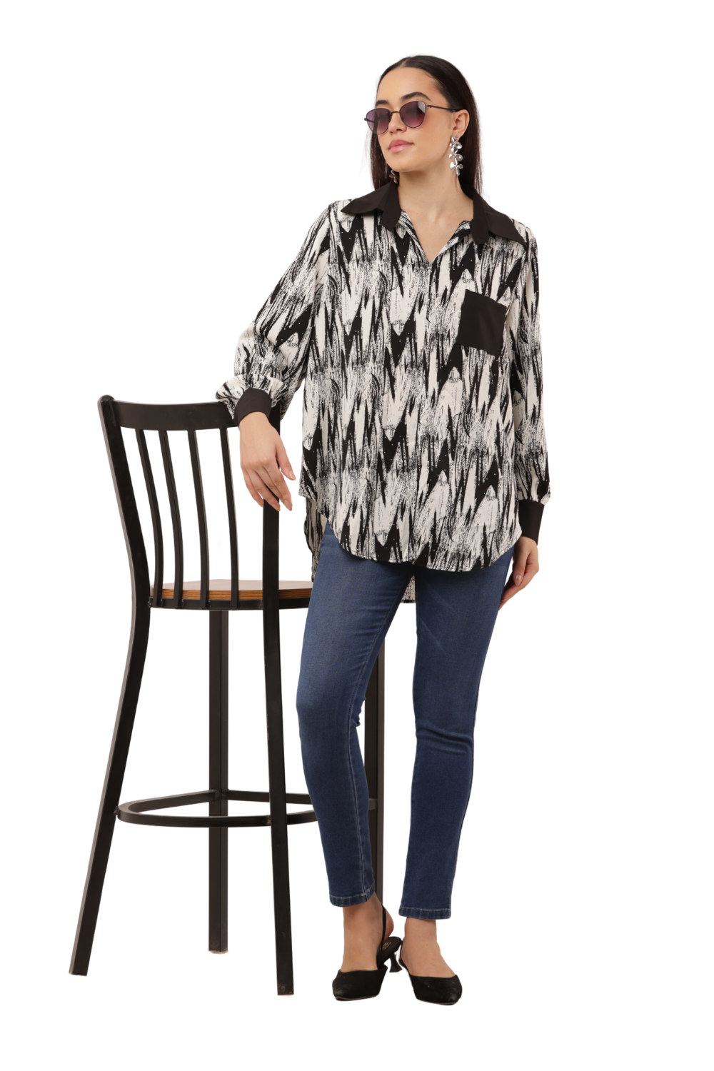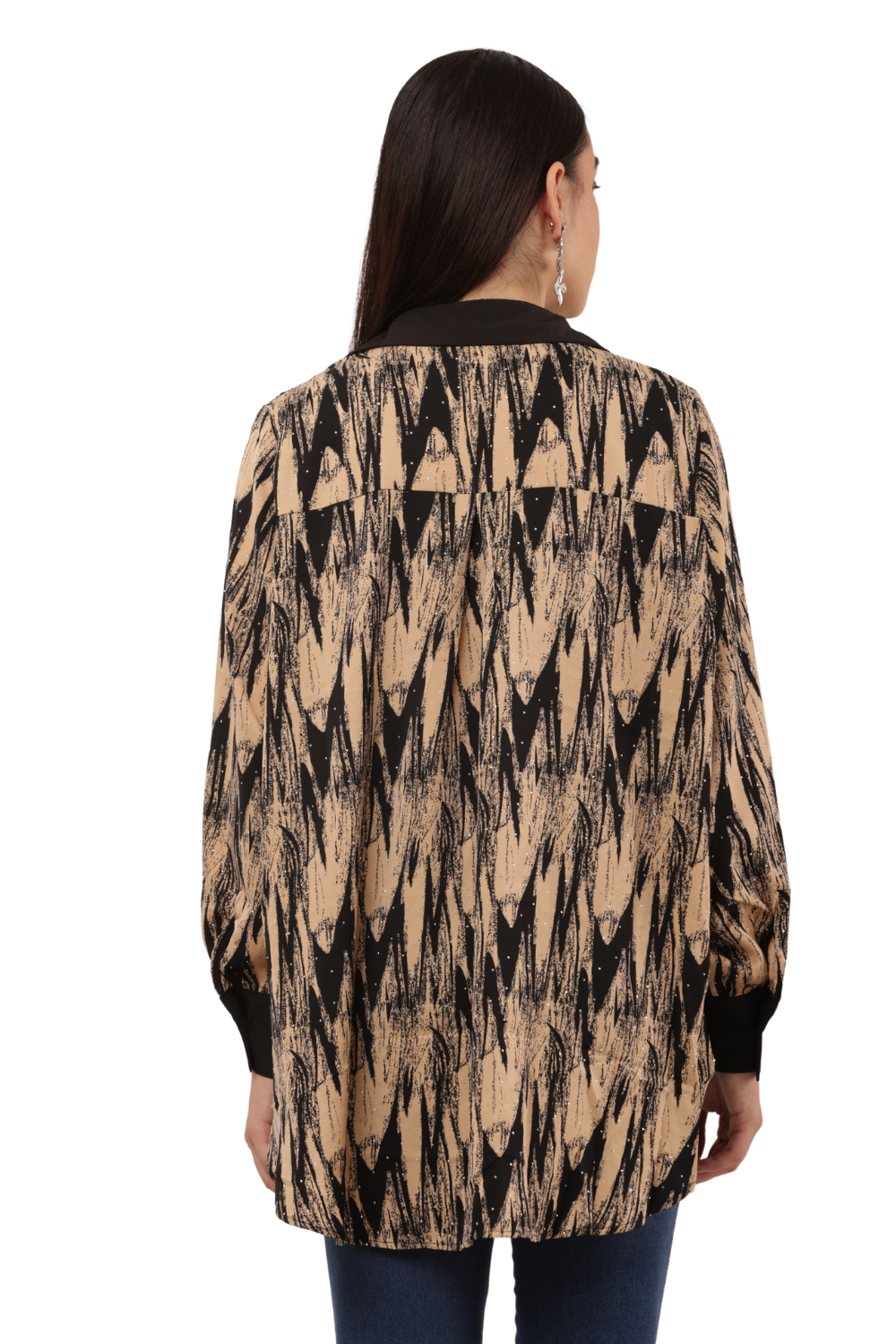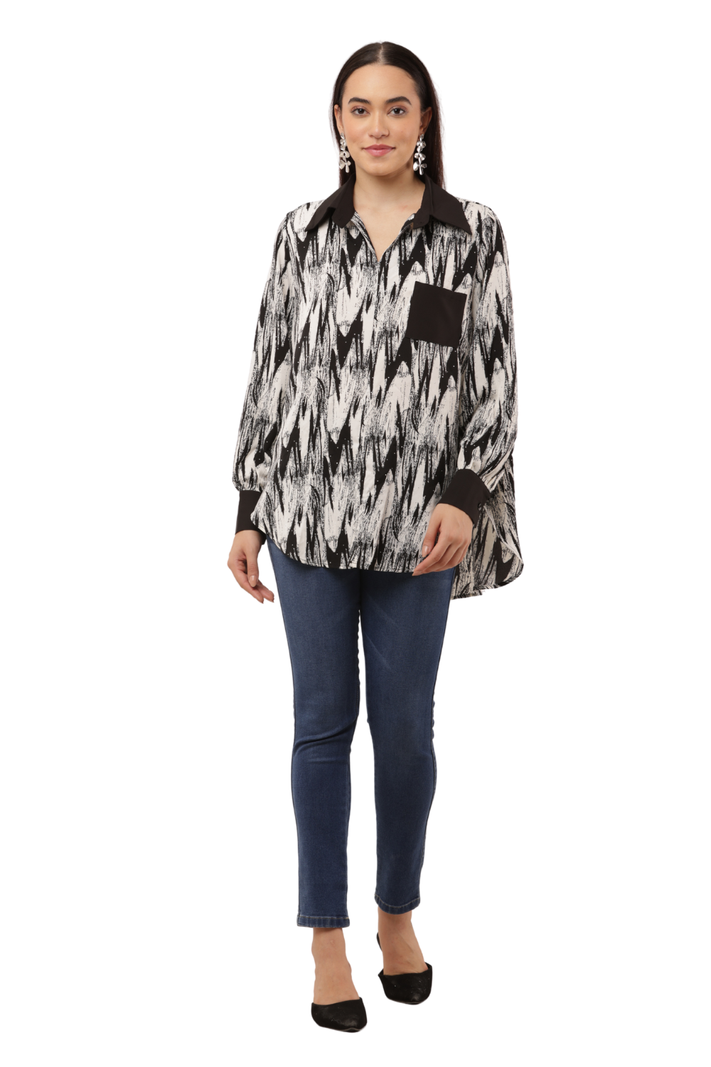 Oversized Abstract Print Button-Down Free Size Shirt with Contrast Detailing