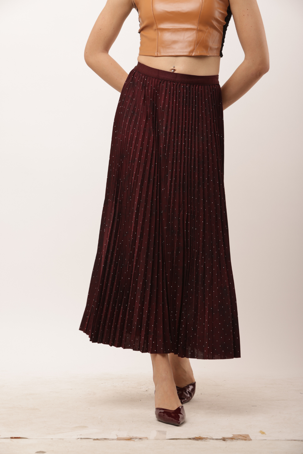 Pleated Midi Skirt with Glitter Detailing – Korean Fashion Style