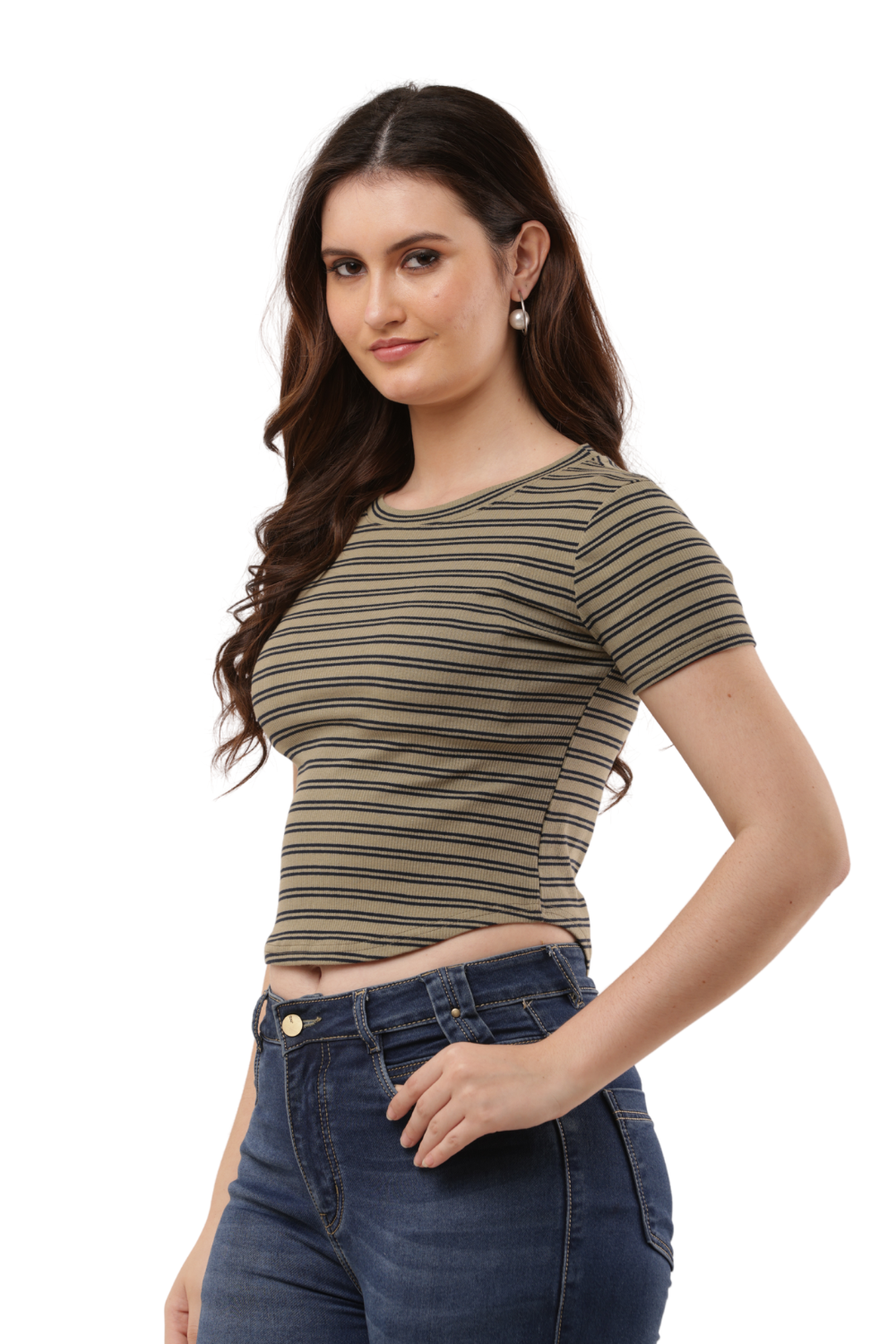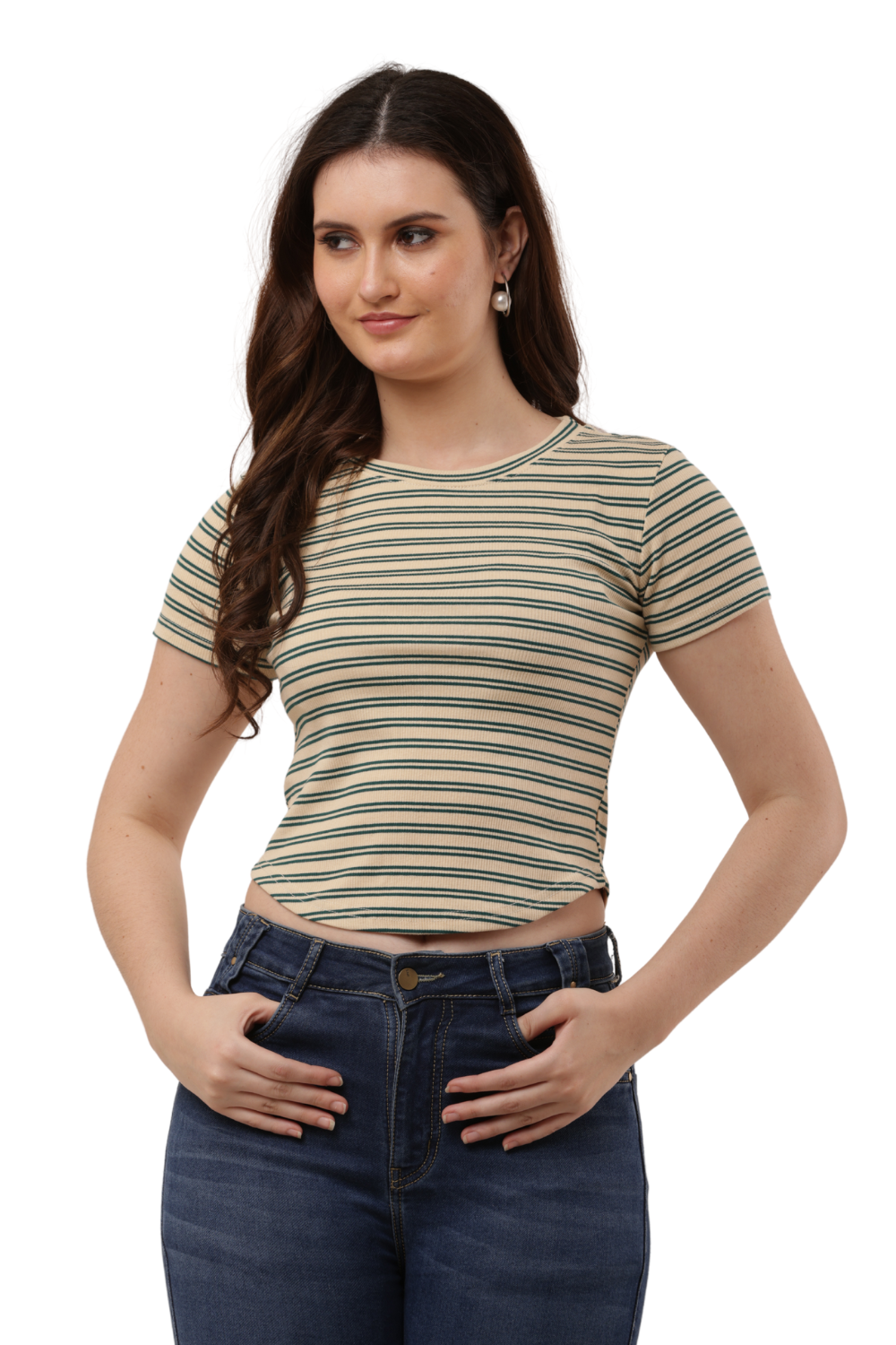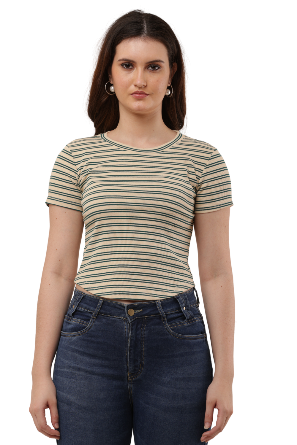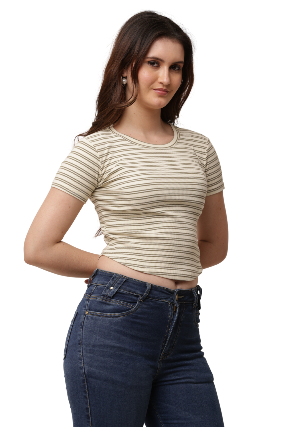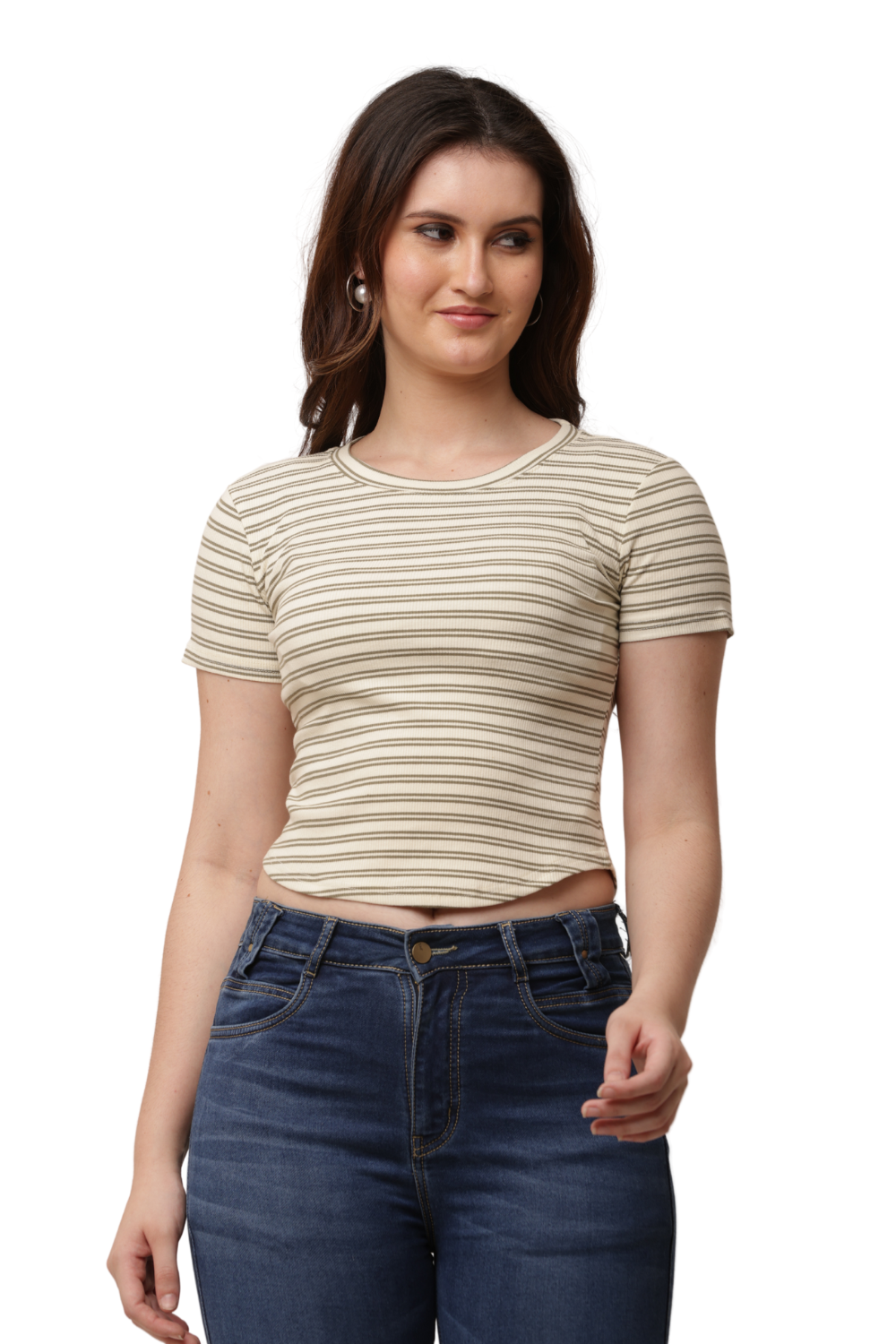 Ribbed Fitted Striped Korean T-Shirt Free Size – Casual Round Neck Tee