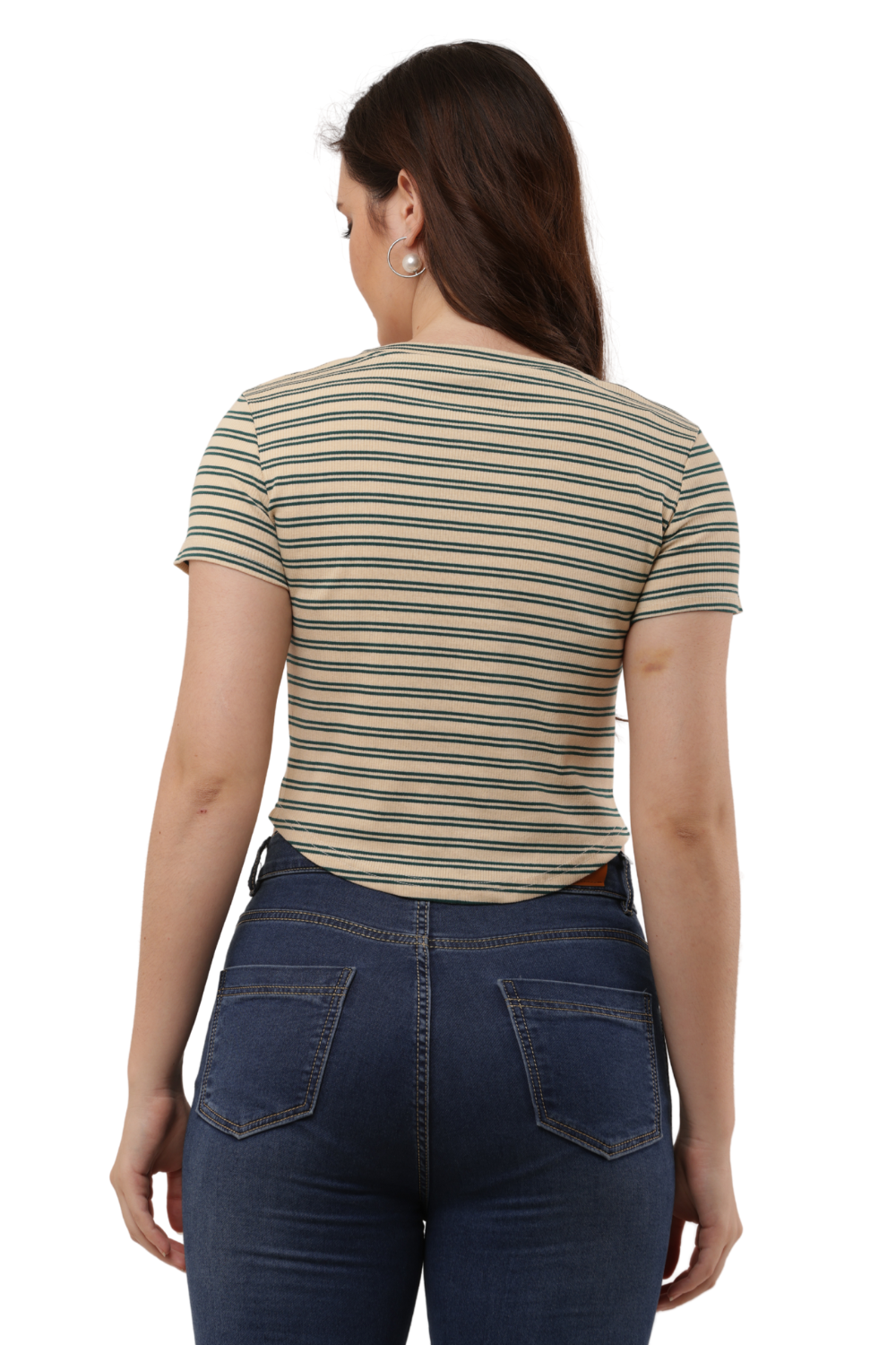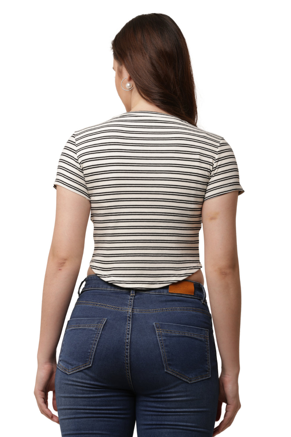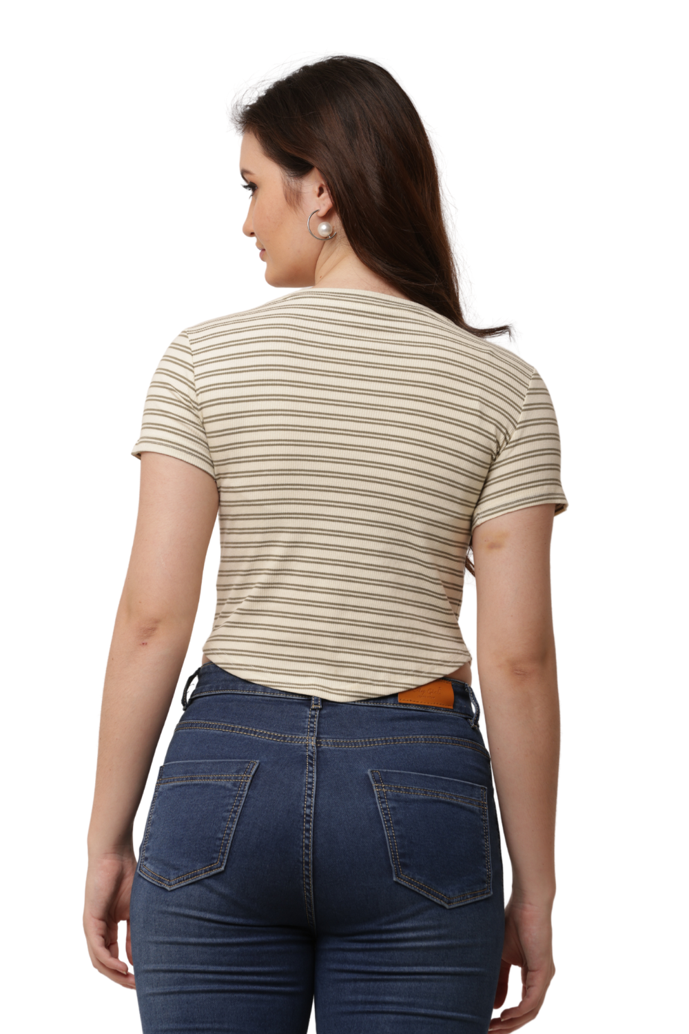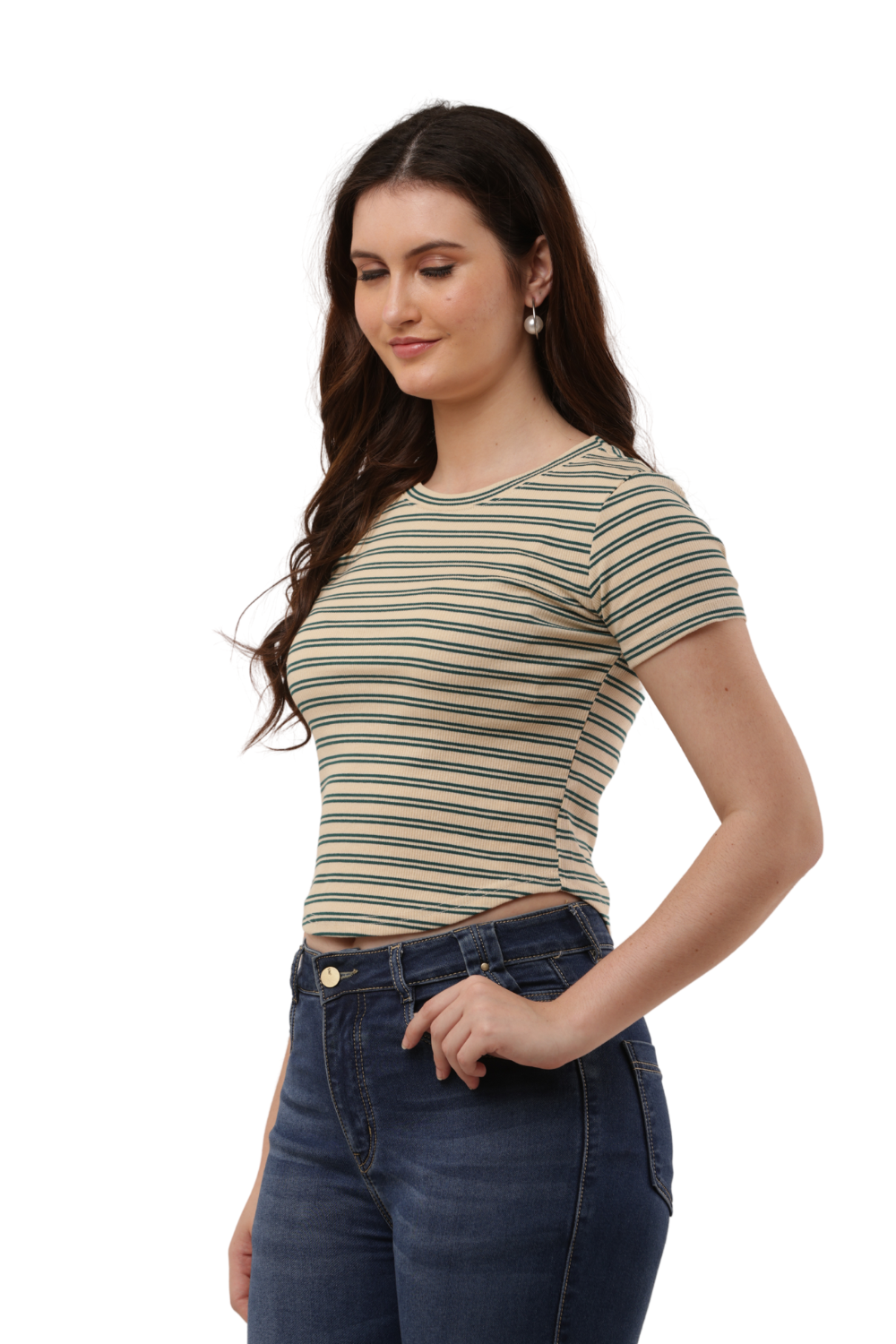 Ribbed Fitted Striped Korean T-Shirt Free Size – Casual Round Neck Tee