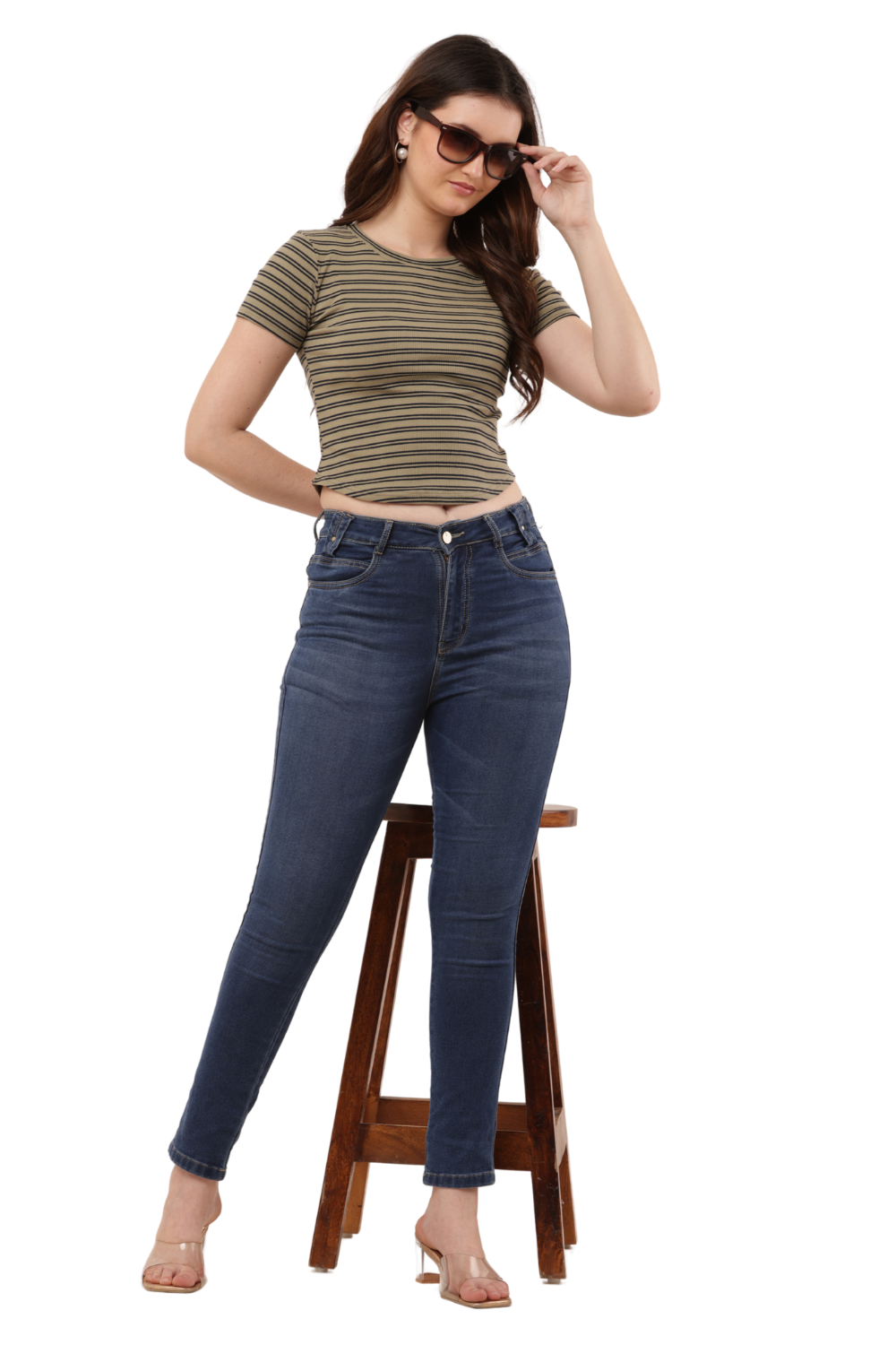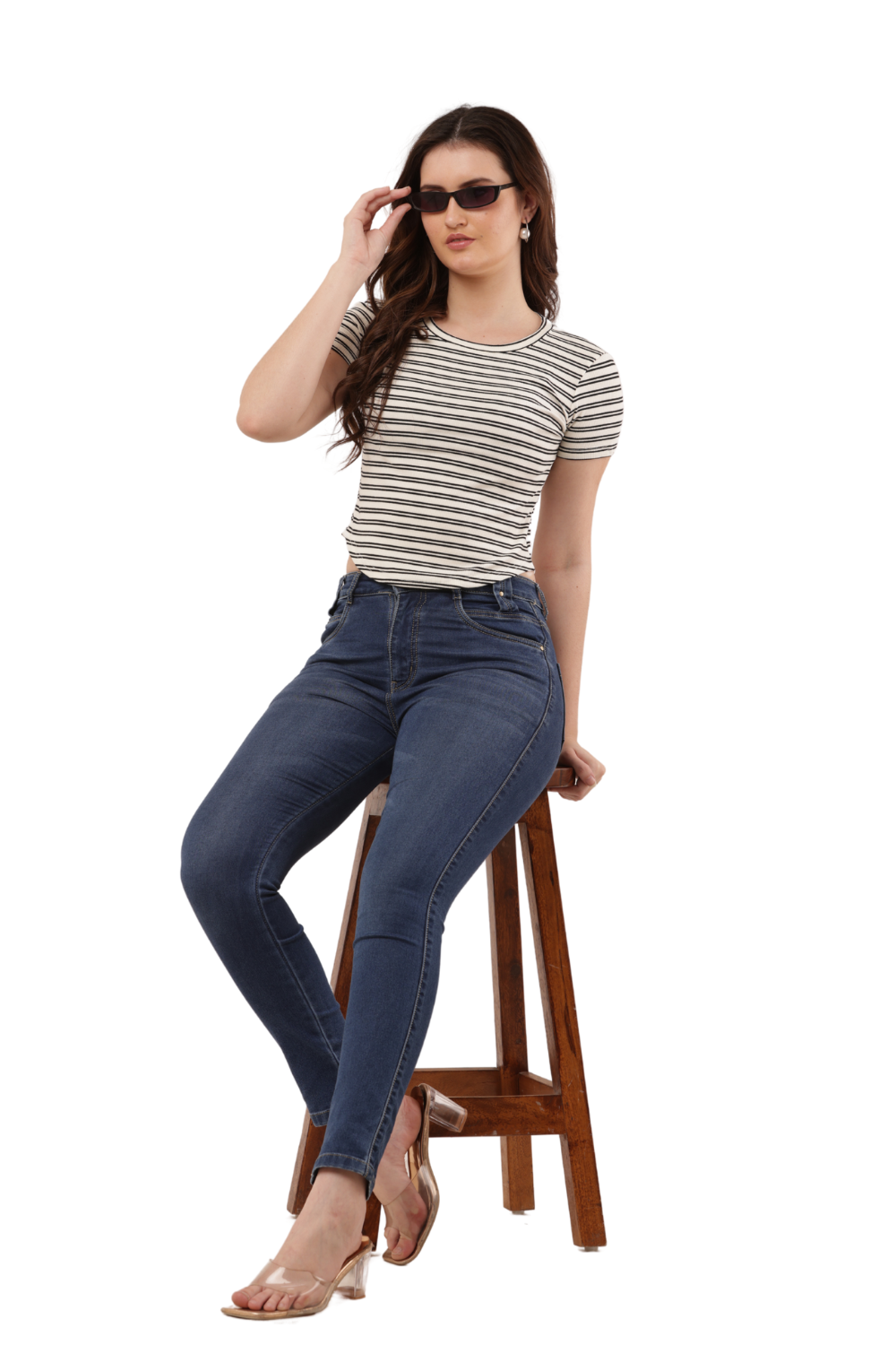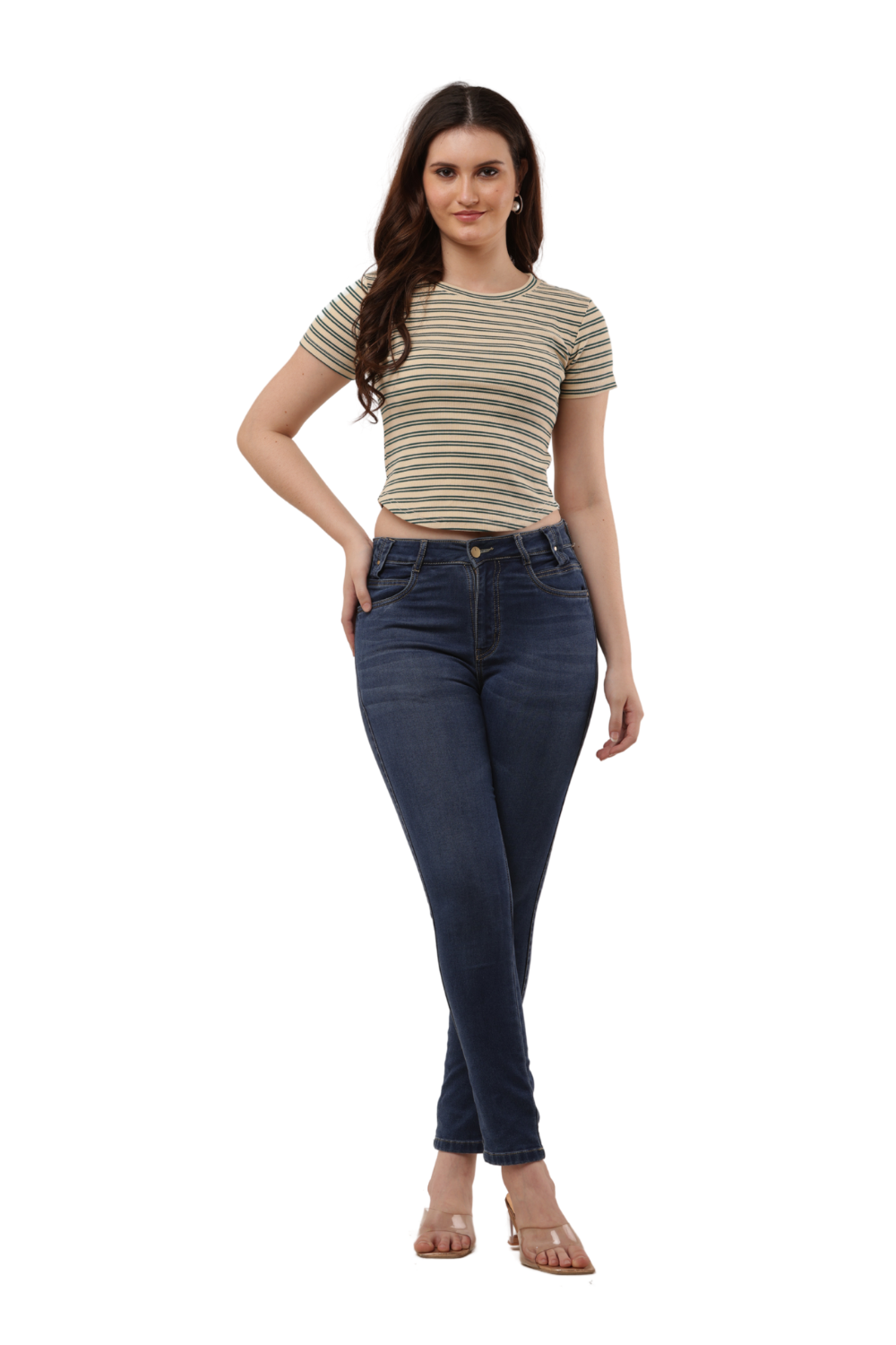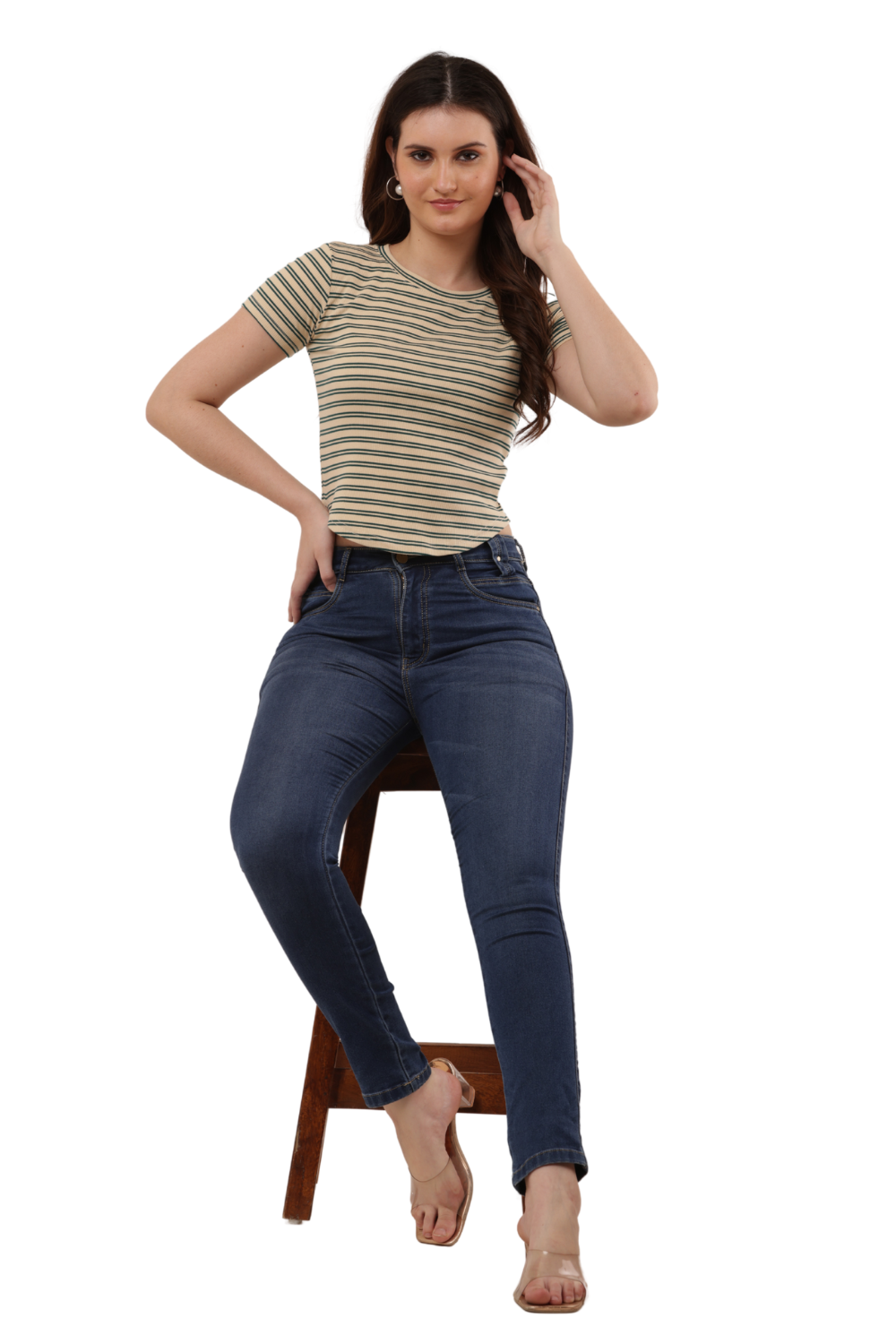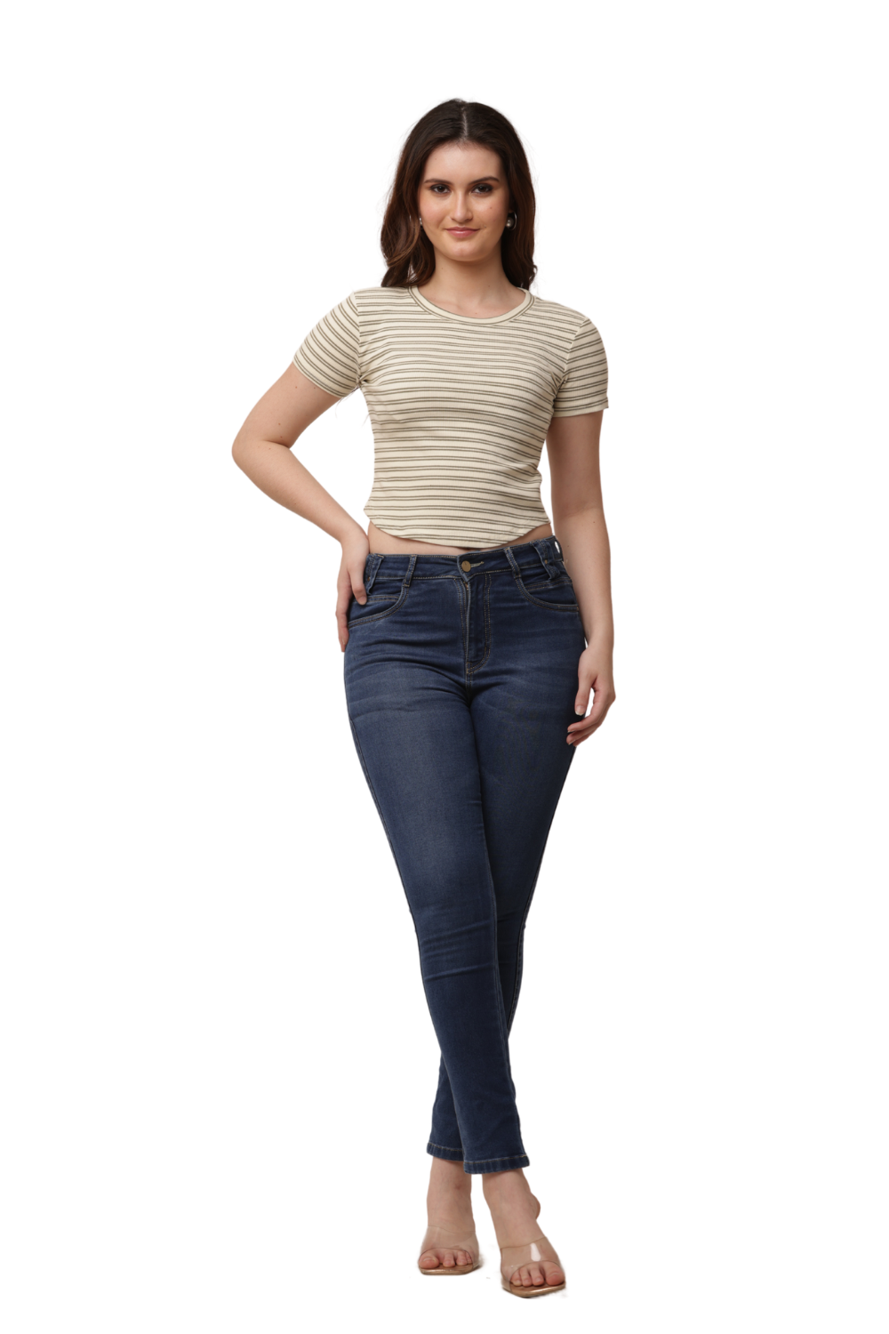Ribbed Fitted Striped Korean T-Shirt Free Size – Casual Round Neck Tee