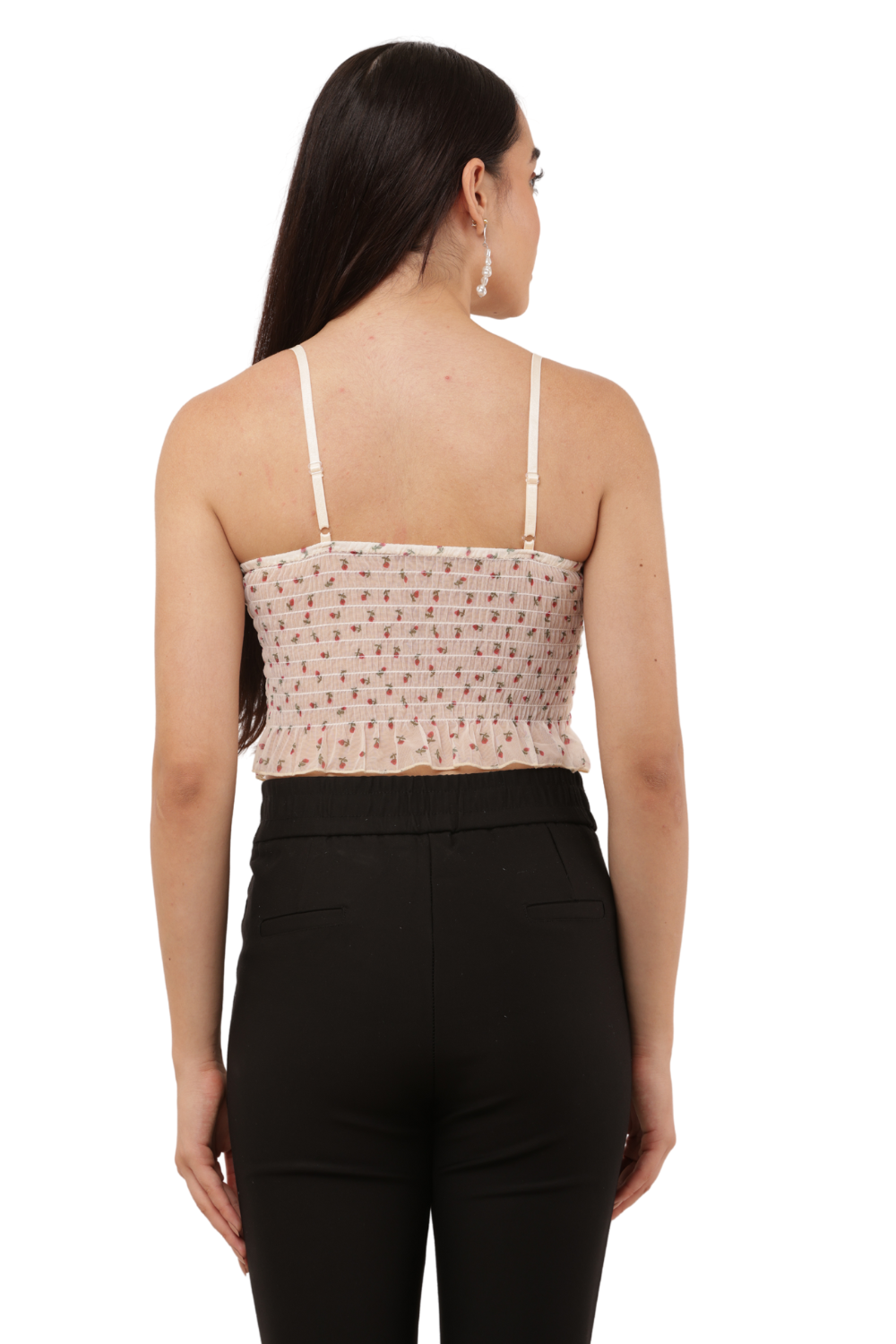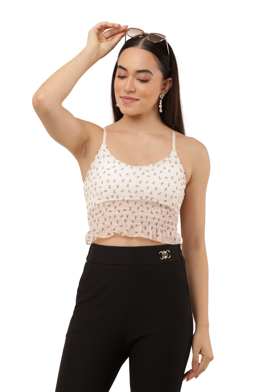 Strawberry Print Free Size Smocked Crop Top with Ruffle Hem – Korean Fashion