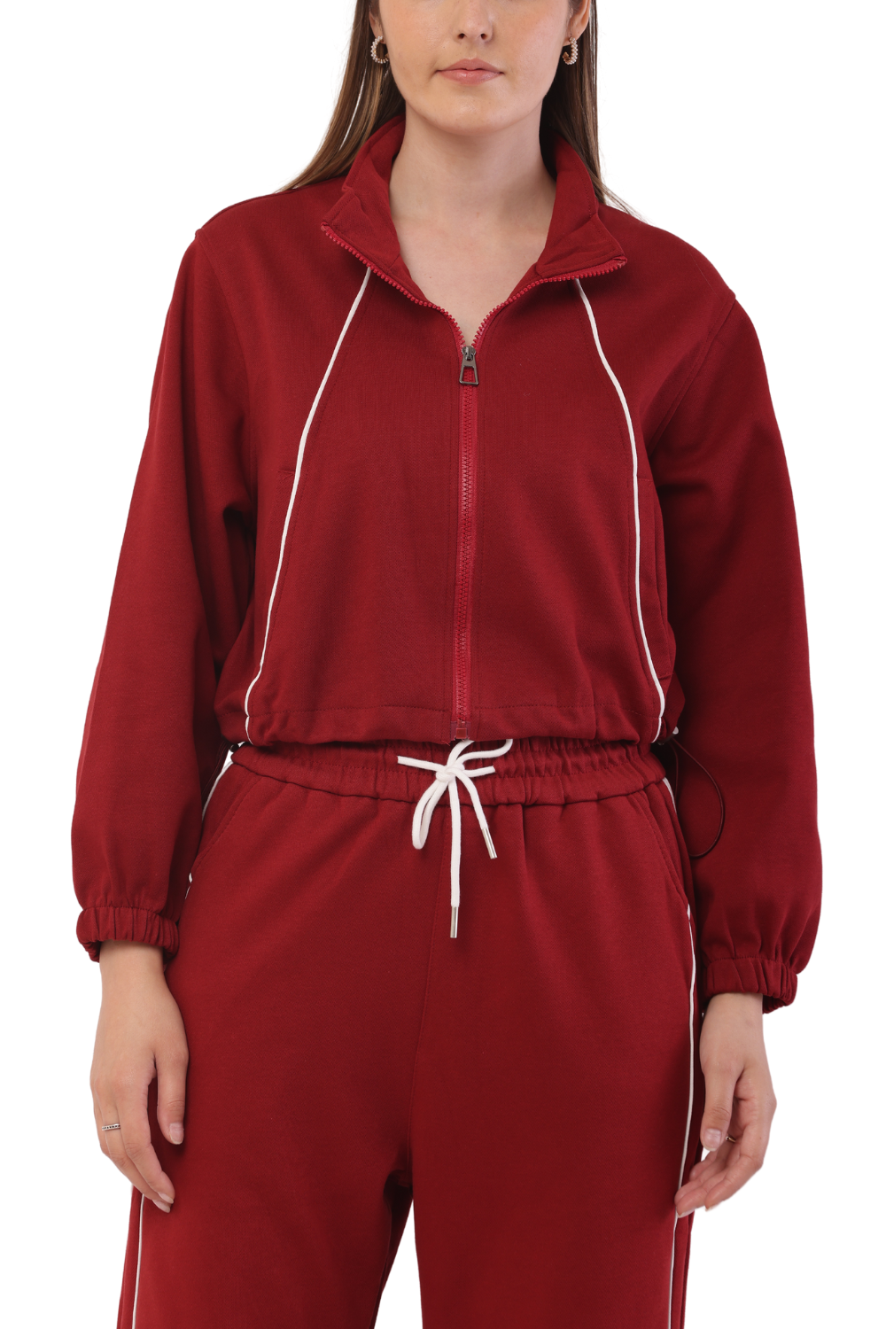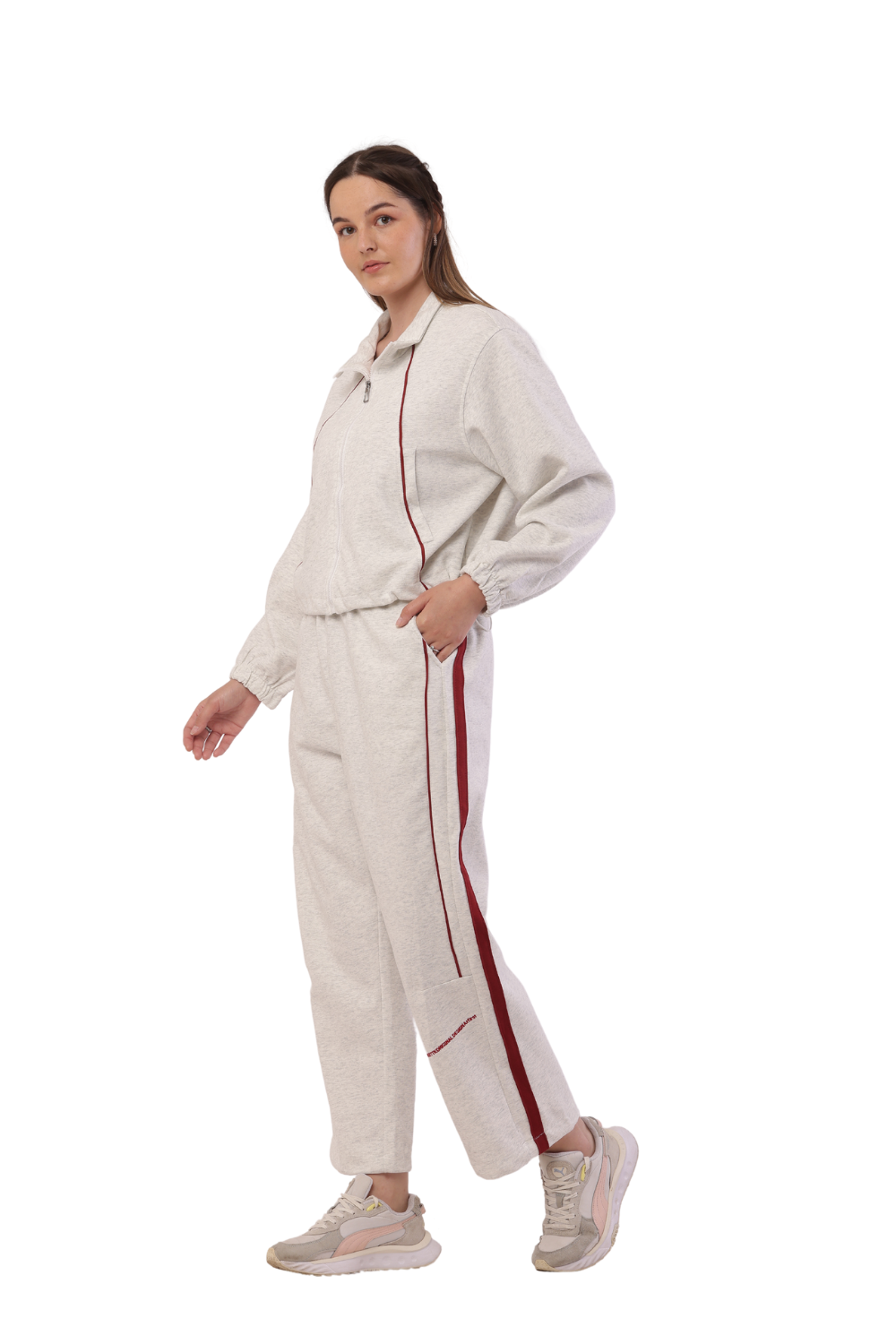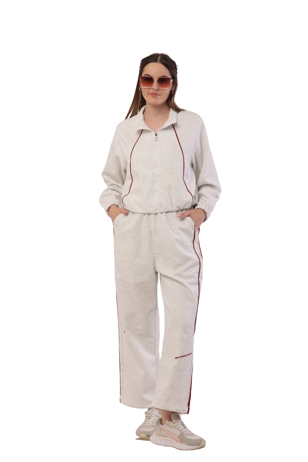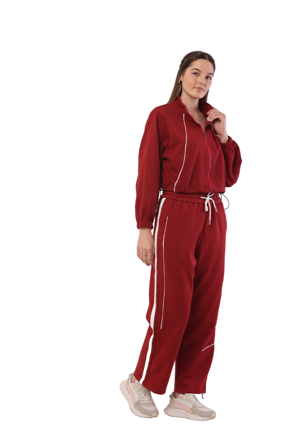 Upgrade your wardrobe with this stylish Korean fashion tracksuit for women. Featuring a cropped zip-up sweatshirt and high-waisted joggers with contrast piping, this set is perfect for casual outings, workouts, and streetwear. The relaxed fit ensures all-day comfort, while the sleek design adds a modern touch. Available in multiple colors, it's a must-have for trendsetters who love sporty elegance.