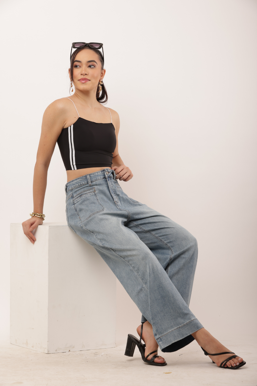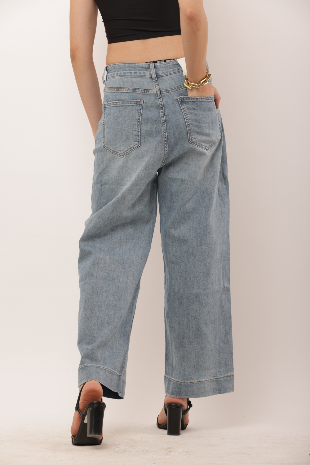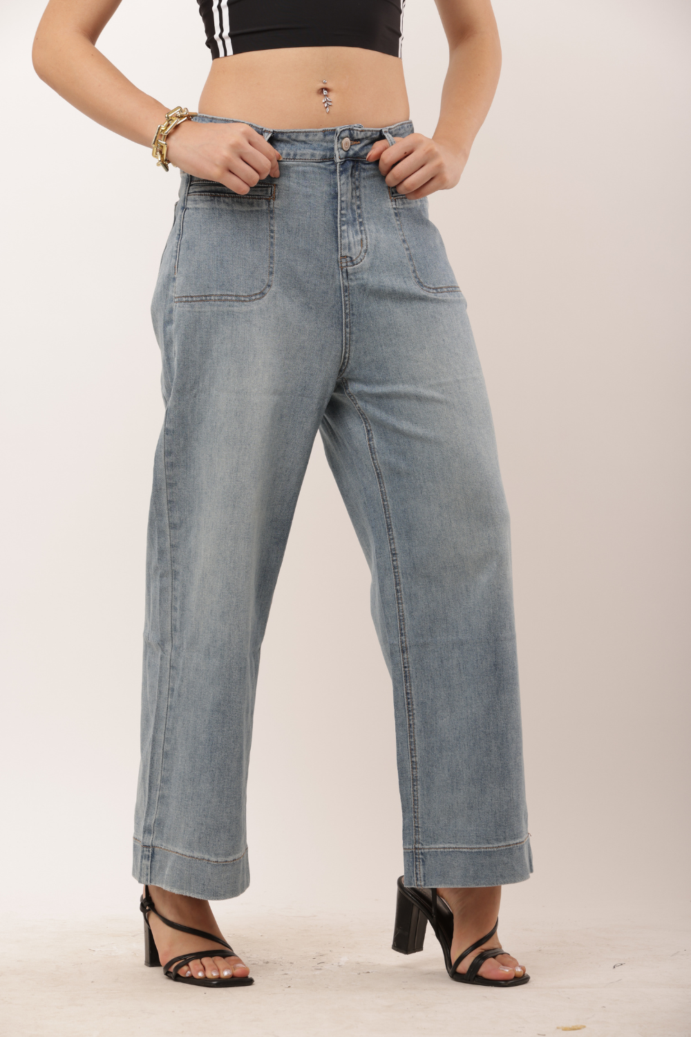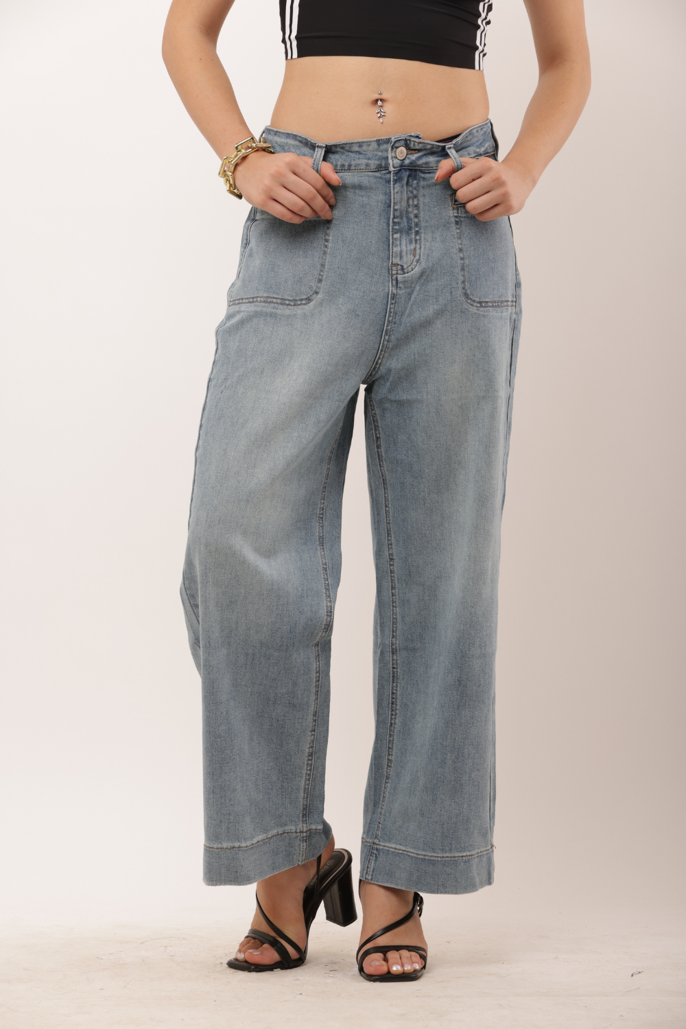 Elevate your everyday wardrobe with these Wide-Leg Korean Denim Jeans – a must-have for fans of Korean fashion. Designed with a relaxed fit and high-rise waist, these jeans offer a flattering silhouette while maintaining all-day comfort. Featuring oversized front utility pockets, classic back patch pockets, and a clean wide-leg cut, they’re perfect for pairing with everything from crop tops to oversized tees. A staple piece in Korean clothes, these jeans blend effortless style with street-ready edge.