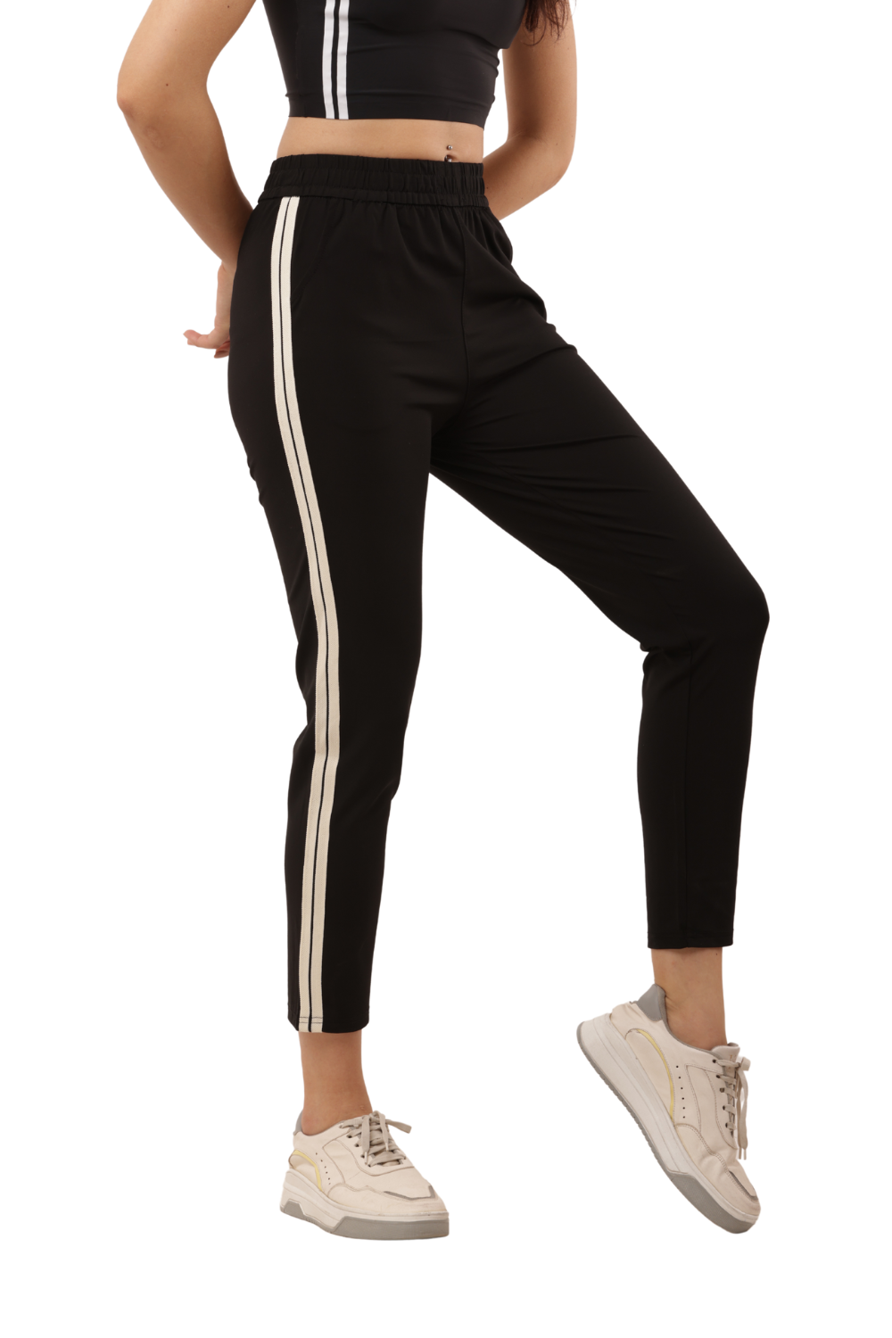 Women's Black Side Stripe Slim Fit Pants – Korean Cotton Casual Wear