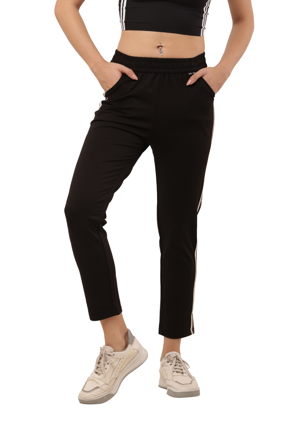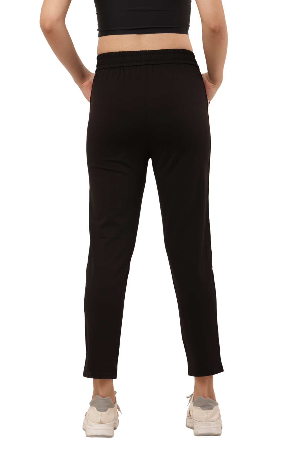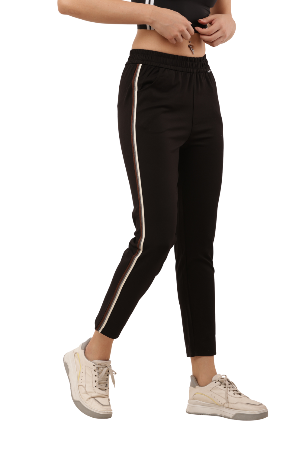 Women's Black Slim Fit Pants with Double Side Stripe – Korean Cotton Plus Lycra