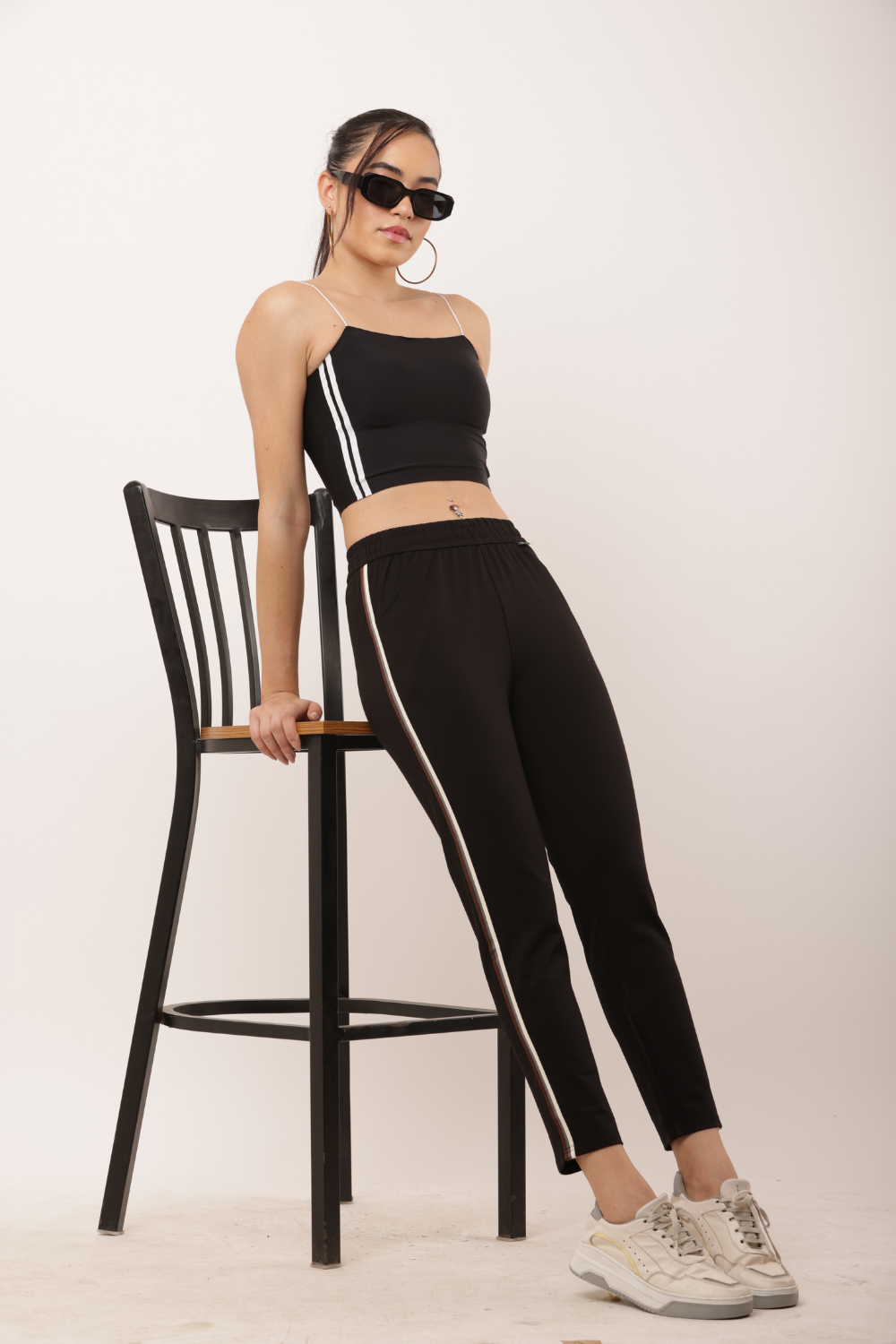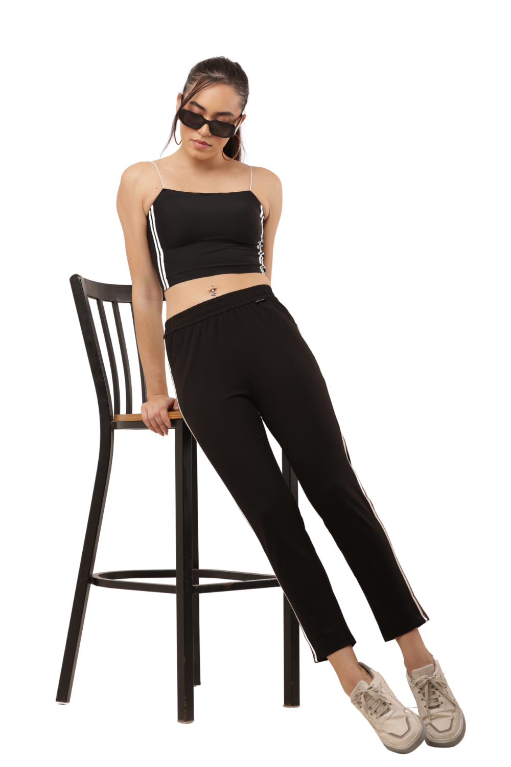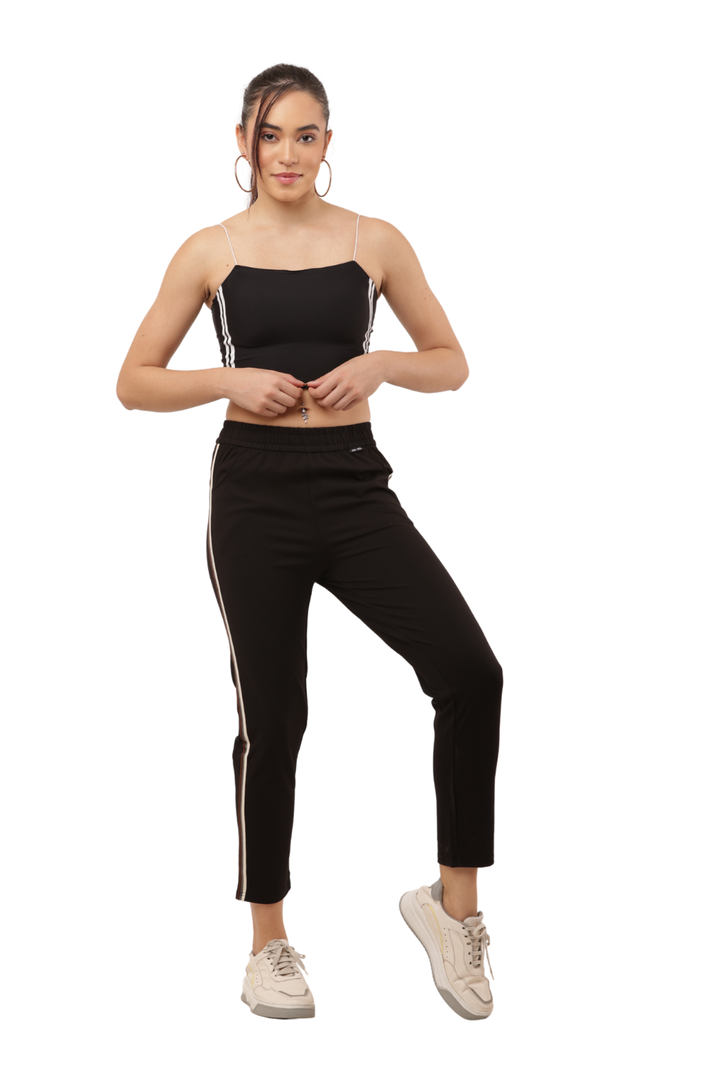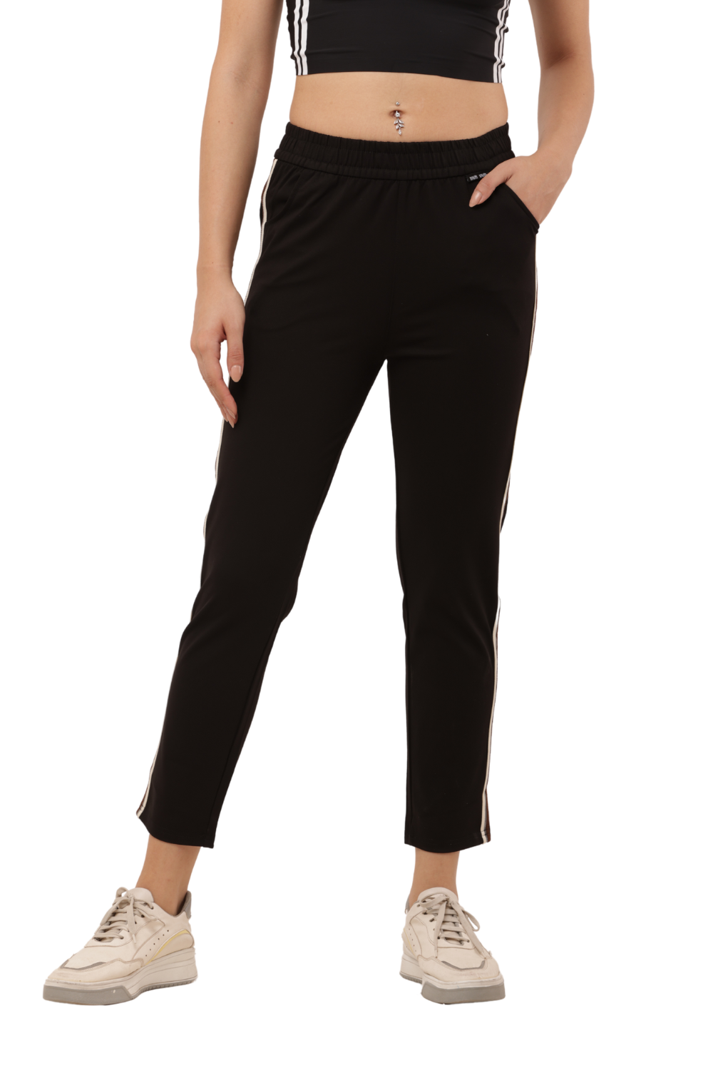 Women's Black Slim Fit Pants with Double Side Stripe – Korean Cotton Plus Lycra
